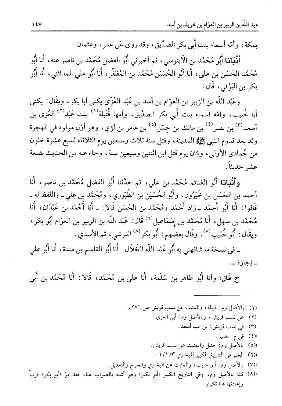 (3) في نسب قريش: بن عبد أسعد