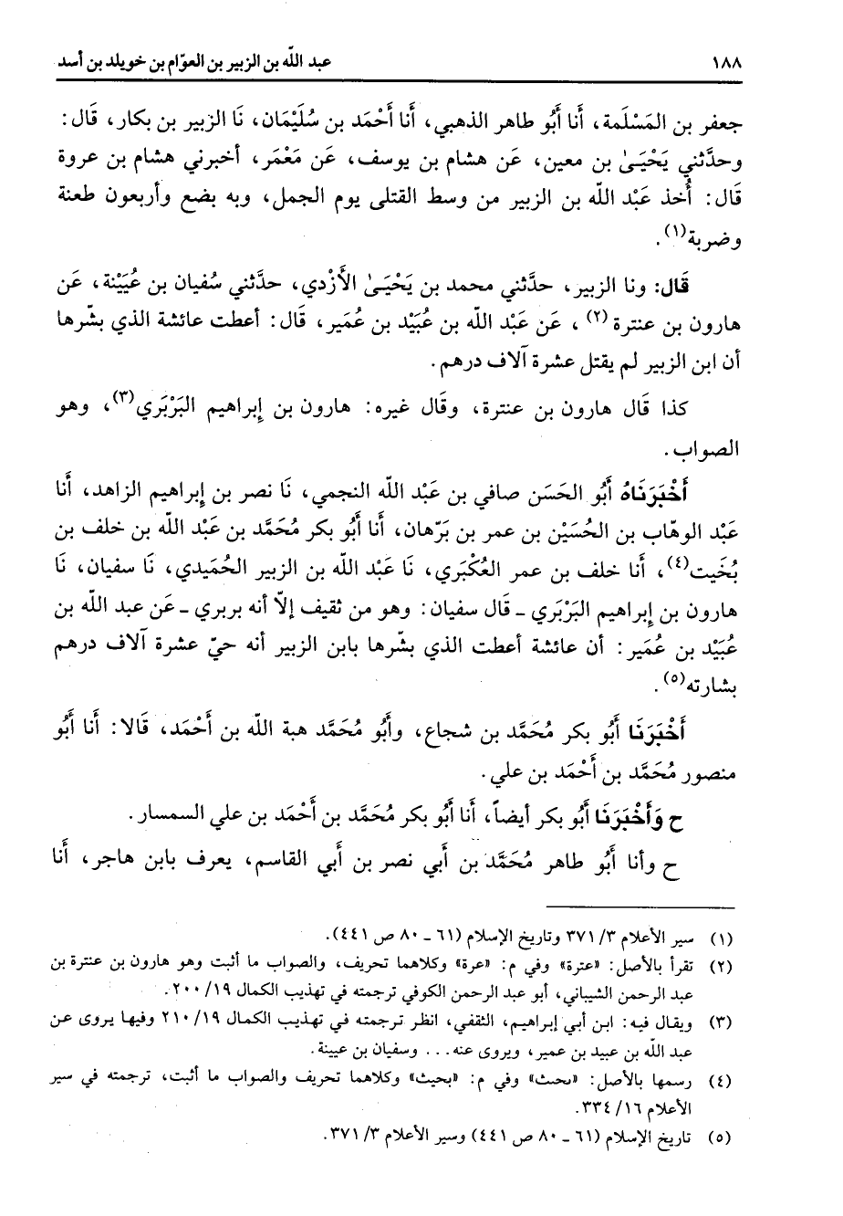 (4) رسمها بالاصل: "؟ " وكلاهما تحريف والصواب ما اثبت ترجمته في سير الاعلام 16 / 334