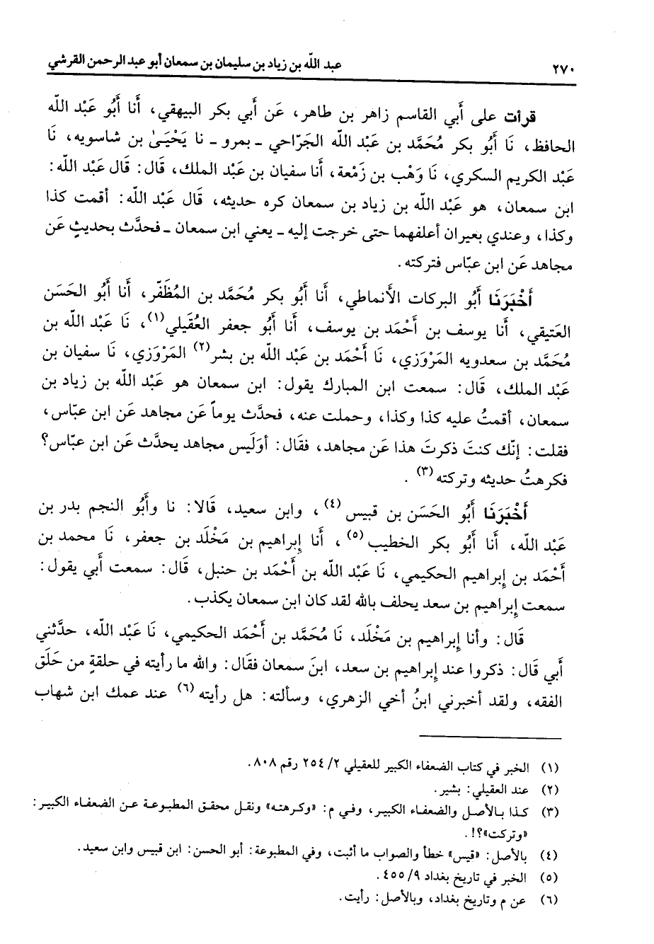 (1) الخبر في كتاب الضعفاء الكبير للعقيلي 2 / 254 رقم 808