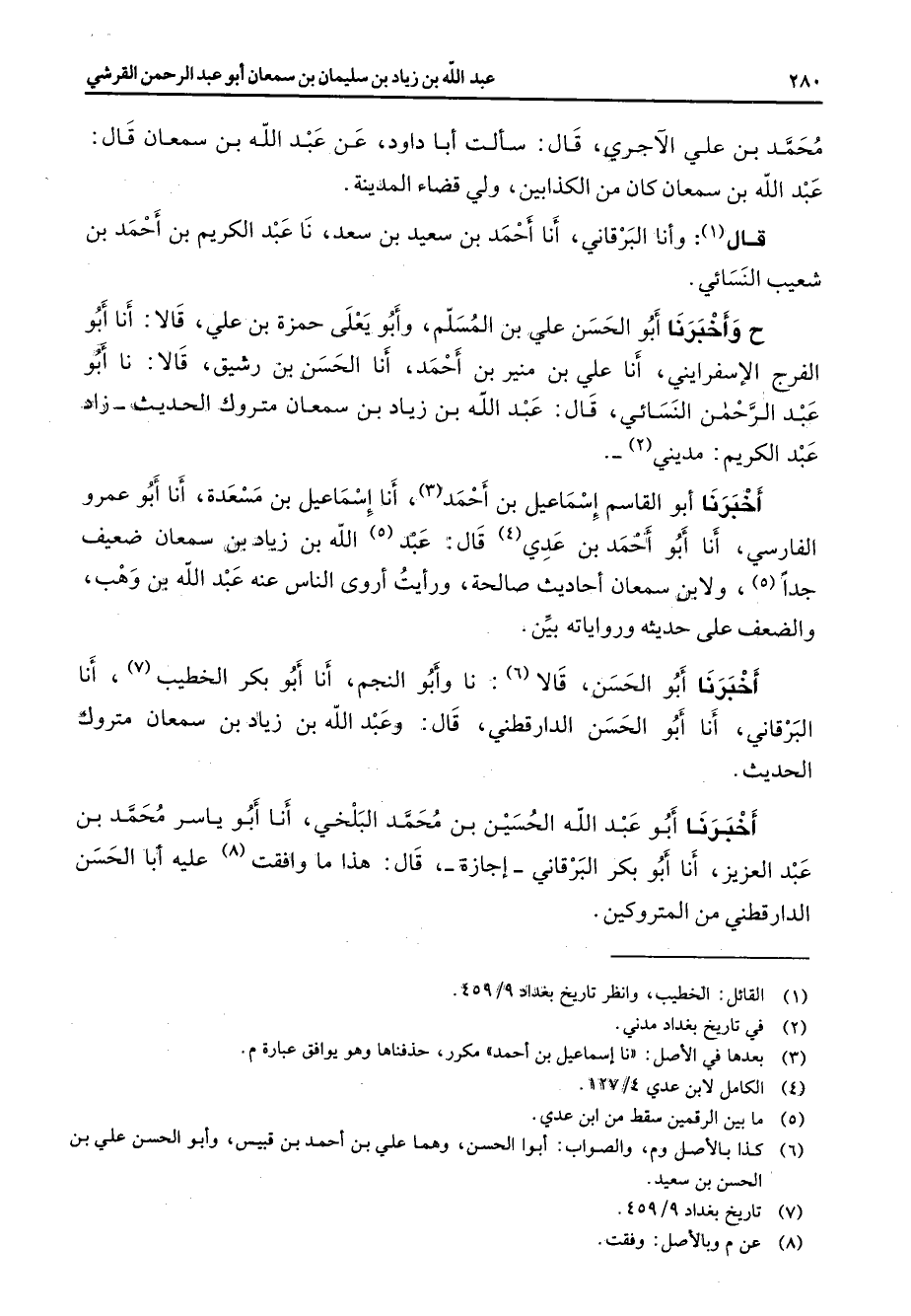 (1) القائل: الخطيب وانظر تاريخ بغداد 9 / 459