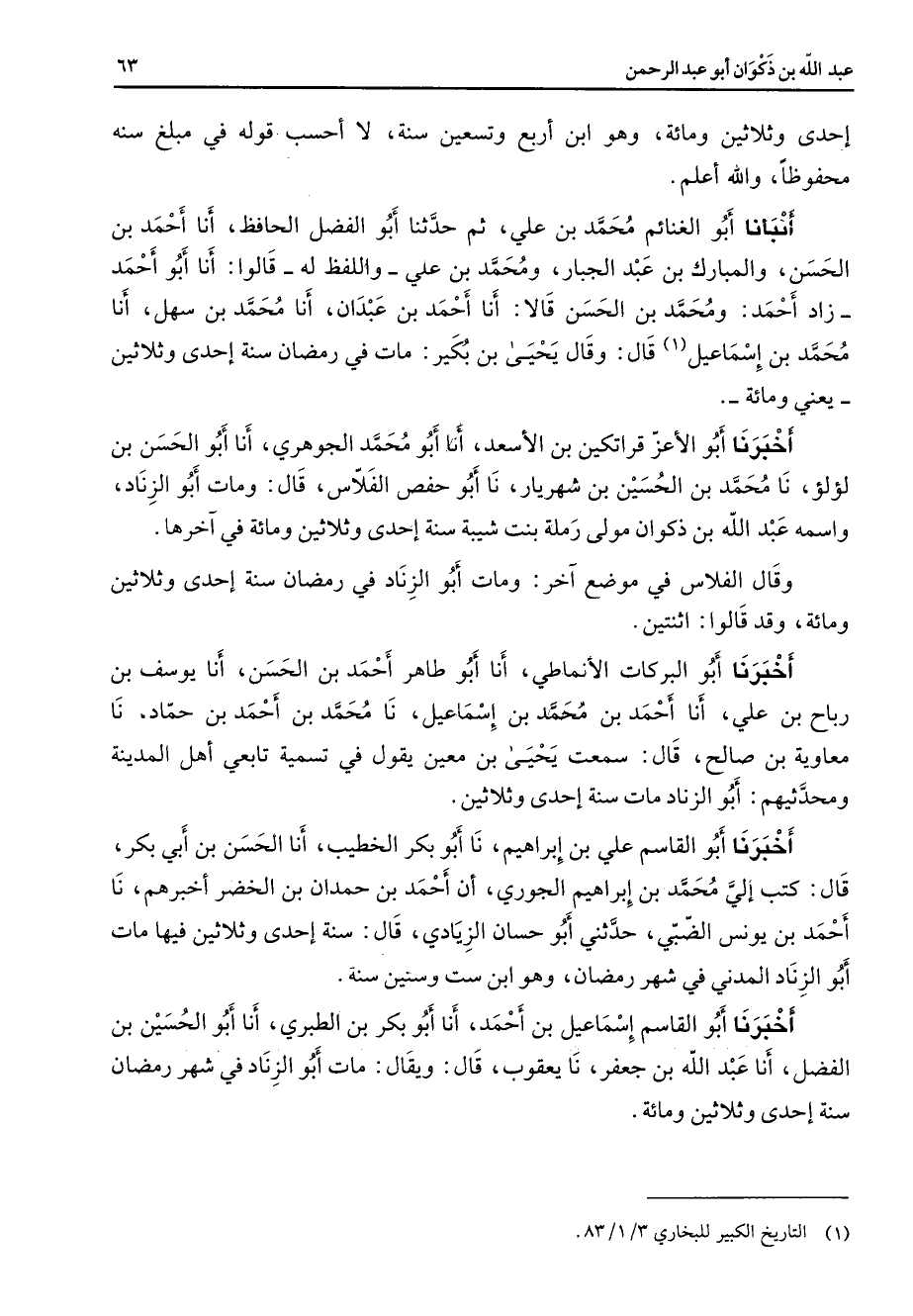 (1) التاريخ الكبير للبخاري 3 / 1 / 83