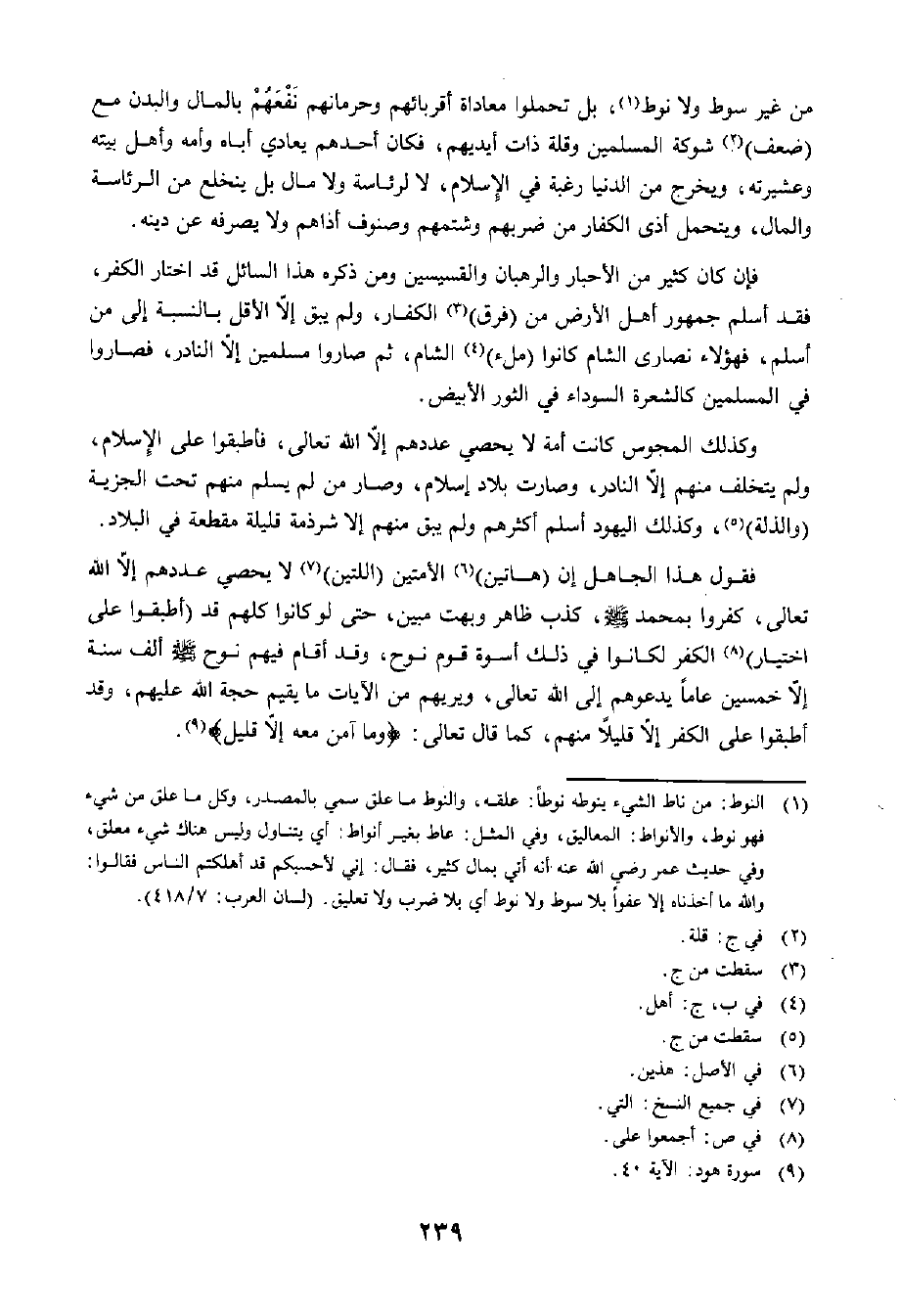 وَكَذَلِكَ الْمَجُوسُ كَانَتْ أُمَّةً لَا يُحْصِي عَدَدَهُمْ إِلَّا اللَّهُ تَعَالَى فَأَطْبَقُوا عَلَى الْإِسْلَامِ، لَمْ يَتَخَلَّفْ مِنْهُمْ إِلَّا النَّادِرُ، وَصَارَتْ بِلَادَ الْإِسْلَامِ، وَصَارَ مَنْ لَمْ يُسْلِمْ مِنْهُمْ تَحْتَ الْجِزْيَةِ وَالذِّلَّةِ، وَكَذَلِكَ الْيَهُودُ أَسْلَمَ أَكْثَرُهُمْ وَلَمْ يَبْقَ مِنْهُمْ إِلَّا شِرْذِمَةٌ قَلِيلَةٌ مُقَطَّعَةٌ فِي الْبِلَادِ.