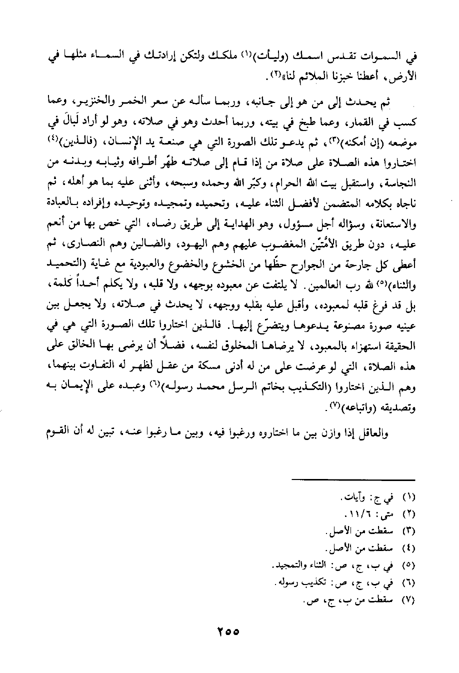 ثُمَّ يُحَدِّثُ إِلَى مَنْ هُوَ إِلَى جَانِبِهِ، وَرُبَّمَا سَأَلَهُ عَنْ سِعْرِ الْخَمْرِ وَالْخِنْزِيرِ، وَعَمَّا كَسَبَ فِي الْقِمَارِ، وَعَمَّا طَبَخَ فِي بَيْتِهِ، وَرُبَّمَا أَحْدَثَ وَهُوَ فِي صَلَاتِهِ، وَلَوْ أَرَادَ لَبَالَ فِي مَوْضِعِهِ إِنْ أَمْكَنَهُ، ثُمَّ يَدْعُو تِلْكَ الصُّورَةَ الَّتِي هِيَ صَنْعَةُ يَدِ الْإِنْسَانِ. فَالَّذِينَ اخْتَارُوا هَذِهِ الصَّلَاةَ عَلَى صَلَاةِ مَنْ إِذَا قَامَ إِلَى صَلَاتِهِ طَهَّرَ أَطْرَافَهُ وَثِيَابَهُ وَبَدَنَهُ مِنَ النَّجَاسَةِ، وَاسْتَقْبَلَ بَيْتَهُ الْحَرَامَ، وَكَبَّرَ اللَّهَ وَحَمِدَهُ وَسَبَّحَهُ، وَأَثْنَى عَلَيْهِ بِمَا هُوَ أَهْلُهُ، ثُمَّ نَاجَاهُ بِكَلَامِهِ الْمُتَضَمِّنِ لِأَفْضَلِ الثَّنَاءِ عَلَيْهِ وَتَحْمِيدِهِ وَتَمْجِيدِهِ وَتَوْحِيدِهِ، وَإِفْرَادِهِ بِالْعِبَادَةِ وَالِاسْتِعَانَةِ، وَسُؤَالِهِ أَجَلَّ مَسْئُولٍ، وَهُوَ الْهِدَايَةُ إِلَى طَرِيقِ رِضَاهُ، الَّتِي خَصَّ بِهَا مَنْ أَنْعَمَ عَلَيْهِ دُونَ طَرِيقِ الْأُمَّتَيْنِ: الْمَغْضُوبِ عَلَيْهِمْ وَهُمُ الْيَهُودُ، وَالضَّالِّينَ وَهُمُ النَّصَارَى، ثُمَّ أَعْطَى كُلَّ جَارِحَةٍ مِنَ الْجَوَارِحِ حَظَّهَا مِنَ الْخُشُوعِ وَالْخُضُوعِ وَالْعُبُودِيَّةِ مَعَ غَايَةِ التَّحْمِيدِ وَالثَّنَاءِ لِلَّهِ رَبِّ الْعَالَمِينَ، لَا يَلْتَفِتُ عَنْ مَعْبُودِهِ بِوَجْهِهِ، وَلَا قَلْبِهِ، وَلَا يُكَلِّمُ أَحَدًا كَلِمَةً، بَلْ قَدْ فَرَّغَ قَلْبَهُ لِمَعْبُودِهِ، وَأَقْبَلَ عَلَيْهِ بِقَلْبِهِ وَوَجْهِهِ، لَا يُحْدِثُ فِي صَلَاتِهِ، وَلَا يَجْعَلُ بَيْنَ عَيْنَيْهِ صُورَةً مَصْنُوعَةً يَدْعُوهَا وَيَتَضَرَّعُ إِلَيْهَا. فَالَّذِينَ اخْتَارُوا تِلْكَ الصُّورَةَ الَّتِي هِيَ فِي الْحَقِيقَةِ اسْتِهْزَاءٌ بِالْمَعْبُودِ، لَا يَرْضَاهَا الْمَخْلُوقُ لِنَفْسِهِ، فَضْلًا أَنْ يَرْضَى بِهَا الْخَالِقُ عَلَى هَذِهِ الصَّلَاةِ، الَّتِي لَوْ عُرِضَتْ عَلَى مَنْ لَهُ أَدْنَى مُسْكَةٍ مِنْ عَقْلٍ لَظَهَرَ لَهُ التَّفَاوُتُ بَيْنَهُمَا. وَهُمُ الَّذِينَ اخْتَارُوا التَّكْذِيبَ بِخَاتَمِ الرُّسُلِ مُحَمَّدٍ رَسُولِهِ وَعَبْدِهِ عَلَى الْإِيمَانِ بِهِ وَتَصْدِيقِهِ وَاتِّبَاعِهِ.