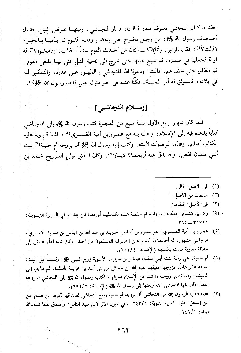 فَلَمَّا كَانَ شَهْرُ رَبِيعٍ الْأَوَّلِ سَنَةَ سَبْعٍ مِنَ الْهِجْرَةِ كَتَبَ رَسُولُ اللَّهِ صَلَّى اللَّهُ عَلَيْهِ وَسَلَّمَ إِلَى النَّجَاشِيِّ كِتَابًا يَدْعُوهُ فِيهِ إِلَى الْإِسْلَامِ، وَبَعَثَ بِهِ مَعَ عَمْرِو بْنِ أُمَيَّةَ الضَّمْرِيِّ، فَلَمَّا قُرِئَ عَلَيْهِ الْكِتَابُ أَسْلَمَ، وَقَالَ: لَوْ قَدَرْتُ لَأَتَيْتُهُ. وَكَتَبَ إِلَيْهِ رَسُولُ اللَّهِ صَلَّى اللَّهُ عَلَيْهِ وَسَلَّمَ أَنْ يُزَوِّجَهُ أُمَّ حَبِيبَةَ بِنْتَ أَبِي سُفْيَانَ فَفَعَلَ، وَأَصْدَقَ عَنْهُ أَرْبَعَمِائَةِ دِينَارٍ، وَكَانَ الَّذِي تَوَلَّى التَّزْوِيجَ خَالِدُ بْنُ