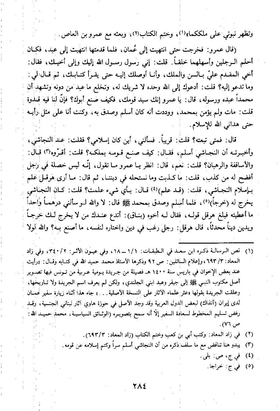وَتَظْهَرُ نُبُوَّتِي عَلَى مُلْكِكُمَا، وَخَتَمَ الْكِتَابَ، وَبُعِثَ مَعَ عَمْرِو بْنِ الْعَاصِ.