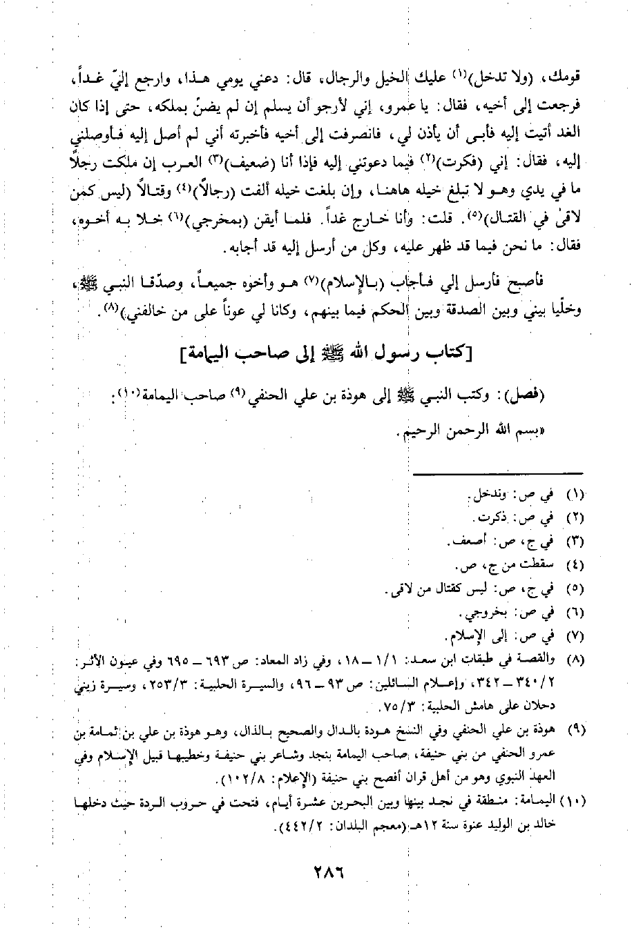 (فَصْلٌ) : وَكَتَبَ النَّبِيُّ صَلَّى اللَّهُ عَلَيْهِ وَسَلَّمَ إِلَى هَوْذَةَ بْنِ عَلِيٍّ الْحَنَفِيِّ صَاحِبِ الْيَمَامَةِ: