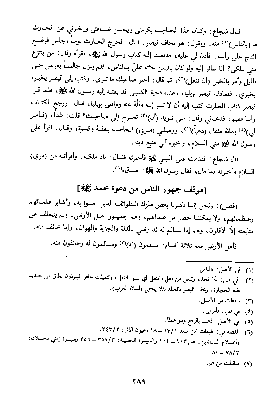 قَالَ شُجَاعٌ: فَكَانَ هَذَا الْحَاجِبُ يُكْرِمُنِي وَيُحْسِنُ ضِيَافَتِي، وَيُخْبِرُنِي عَنِ الْحَارِثِ مَا بِالنَّاسِ مِنْهُ، وَيَقُولُ: هُوَ يَخَافُ قَيْصَرَ، قَالَ: فَخَرَجَ الْحَارِثُ يَوْمًا وَجَلَسَ فَوَضَعَ التَّاجَ عَلَى رَأْسِهِ، فَأُذِنَ لِي عَلَيْهِ، فَدَفَعْتُ إِلَيْهِ كِتَابَ رَسُولِ اللَّهِ صَلَّى اللَّهُ عَلَيْهِ وَسَلَّمَ فَقَرَأَهُ، وَقَالَ: مَنْ يَنْتَزِعُ مِنِّي مُلْكِي؟! أَنَا سَائِرٌ إِلَيْهِ وَلَوْ كَانَ بِالْيَمَنِ جِئْتُهُ، عَلَيَّ بِالنَّاسِ، فَلَمْ يَزَلْ جَالِسًا يُعَرِّضُ حَتَّى اللَّيْلِ، وَأَمَرَ بِالْخَيْلِ أَنْ تُنَعَّلَ، ثُمَّ قَالَ: أَخْبِرْ صَاحِبَكَ مَا تَرَى، وَكَتَبَ إِلَى قَيْصَرَ يُخْبِرُهُ بِخَبَرِي فَصَادَفَ قَيْصَرَ بِإِيلِيَا، وَعِنْدَهُ دَحْيَةُ الْكَلْبِيُّ قَدْ بَعَثَهُ إِلَيْهِ رَسُولُ اللَّهِ صَلَّى اللَّهُ عَلَيْهِ وَسَلَّمَ، فَلَمَّا قَرَأَ قَيْصَرُ كِتَابَ الْحَارِثِ كَتَبَ إِلَيْهِ أَنْ لَا تَسِرْ إِلَيْهِ وَالْهُ عَنْهُ وَوَافِنِي بِإِيلِيَا. قَالَ: وَرَجَعَ الْكِتَابُ وَأَنَا مُقِيمٌ، فَدَعَانِي وَقَالَ: مَتَى تُرِيدُ أَنْ تَخْرُجَ إِلَى صَاحِبِكَ؟ قُلْتُ: غَدًا، فَأَمَرَ لِي بِمِائَةِ مِثْقَالٍ ذَهَبًا، وَوَصَلَنِي (مُرِيٌّ) بِنَفَقَةٍ وَكِسْوَةٍ، وَقَالَ: اقْرَأْ عَلَى رَسُولِ اللَّهِ صَلَّى اللَّهُ عَلَيْهِ وَسَلَّمَ مِنِّي السَّلَامَ، وَأَخْبِرْهُ أَنِّي مُتَّبِعٌ دِينَهُ.