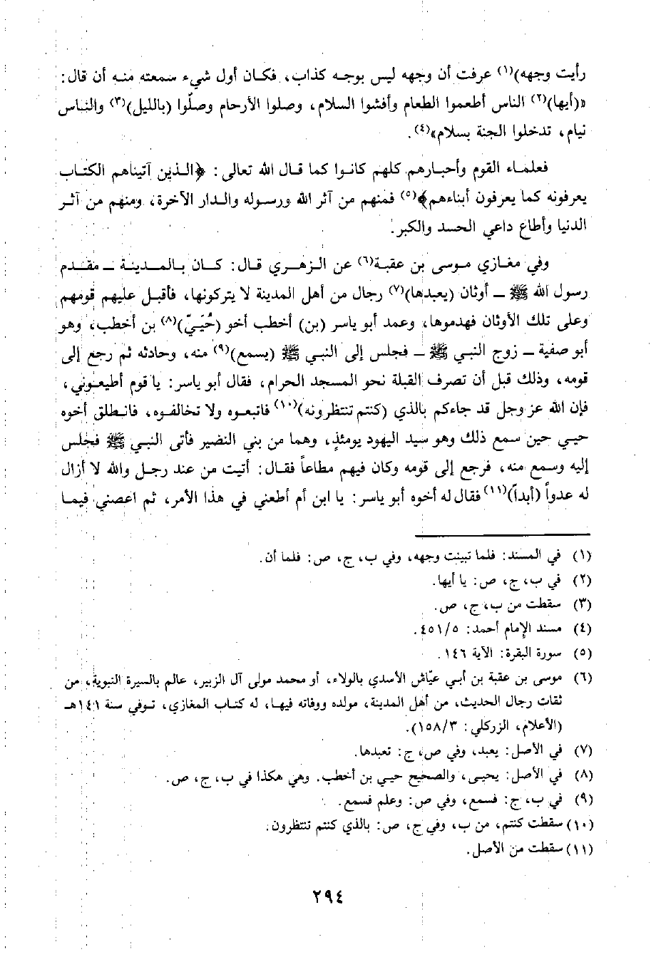 رَأَيْتُ وَجْهَهُ عَرَفْتُ أَنَّ وَجْهَهُ لَيْسَ بِوَجْهِ كَذَّابٍ، فَكَانَ أَوَّلُ شَيْءٍ سَمِعْتُهُ مِنْهُ أَنْ قَالَ: أَيُّهَا النَّاسُ أَطْعِمُوا الطَّعَامَ وَأَفْشُوا السَّلَامَ، وَصِلُوا الْأَرْحَامَ، وَصَلُّوا بِاللَّيْلِ وَالنَّاسُ نِيَامٌ - تَدْخُلُوا الْجَنَّةَ بِسَلَامٍ.