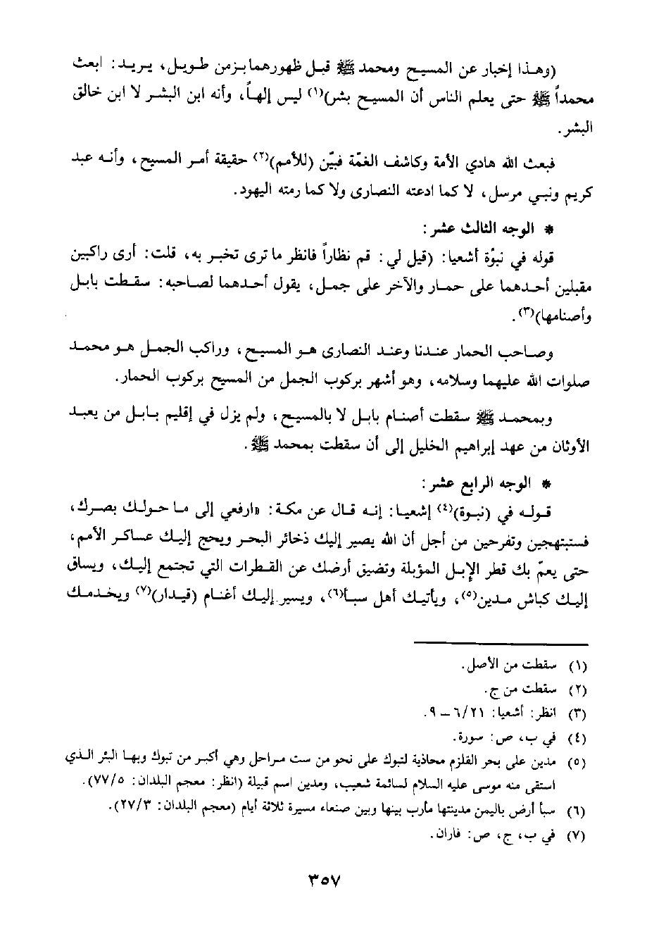 وَبِمُحَمَّدٍ صَلَّى اللَّهُ عَلَيْهِ وَسَلَّمَ سَقَطَتْ أَصْنَامُ بَابِلَ لَا بِالْمَسِيحِ، وَلَمْ يَزَلْ فِي إِقْلِيمِ بَابِلَ مَنْ يَعْبُدُ الْأَوْثَانَ مِنْ عَهِدِ إِبْرَاهِيمَ الْخَلِيلِ إِلَى أَنْ سَقَطَتْ بِمُحَمَّدٍ صَلَّى اللَّهُ عَلَيْهِ وَسَلَّمَ.