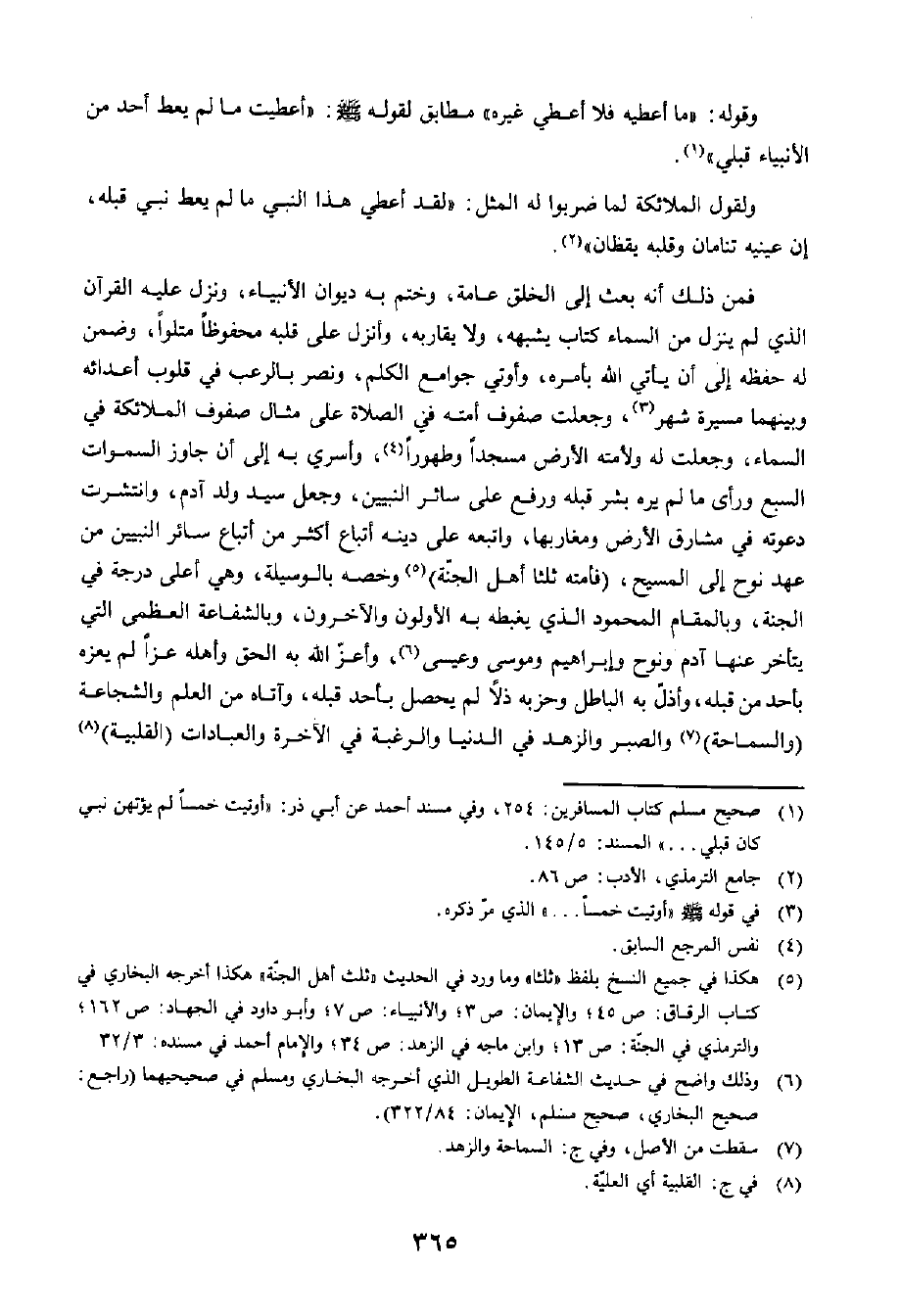 وَلِقَوْلِ الْمَلَائِكَةِ لَمَّا ضَرَبُوا لَهُ الْمَثَلَ: لَقَدْ أُعْطِيَ هَذَا النَّبِيُّ مَا لَمْ يُعْطَ نَبِيٌّ قَبْلَهُ، إِنَّ عَيْنَيْهِ تَنَامَانِ وَقَلْبَهُ يَقْظَانُ.