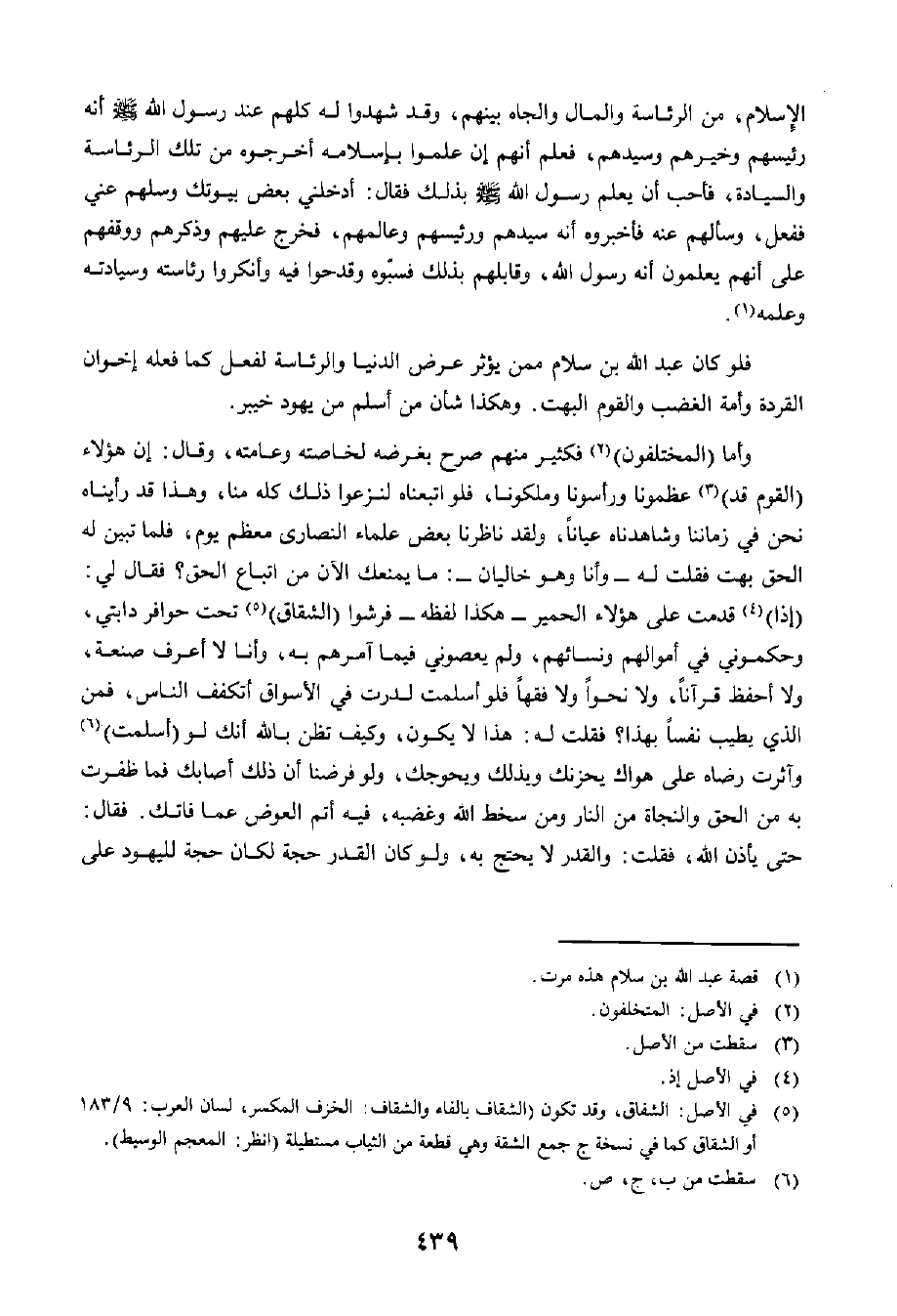 فَلَوْ كَانَ عَبْدُ اللَّهِ بْنُ سَلَامٍ مِمَّنْ يُؤْثِرُ عَرَضَ الدُّنْيَا وَالرِّئَاسَةِ لَفَعَلَ كَمَا فَعَلَهُ إِخْوَانُ الْقِرَدَةِ وَأُمَّةُ الْغَضَبِ وَالْقَوْمُ الْبُهْتُ، وَهَكَذَا شَأْنُ مَنْ أَسْلَمَ مِنْ يَهُودِ خَيْبَرَ.