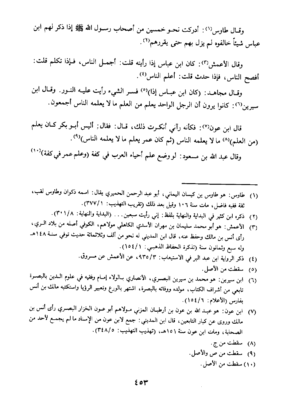وَقَالَ مُجَاهِدٌ: ... كَانَ ابْنُ عَبَّاسٍ إِذَا فَسَّرَ الشَّيْءَ رَأَيْتُ عَلَيْهِ النُّورَ....... وَقَالَ ابْنُ سِيرِينَ: كَانُوا يَرَوْنَ أَنَّ الرَّجُلَ الْوَاحِدَ يَعْلَمُ مِنَ الْعِلْمِ مَا لَا يَعْلَمُهُ النَّاسُ أَجْمَعُونَ.