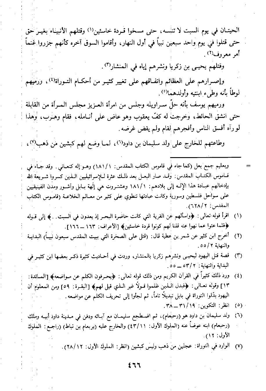 وَقَتْلُهُمْ يَحْيَى بْنَ زَكَرِيَّا، وَنَشْرُهُمْ إِيَّاهُ فِي الْمِنْشَارِ.