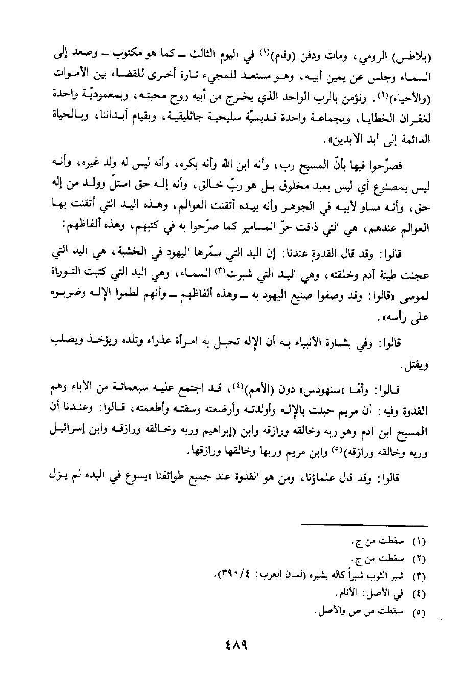 قَالُوا: وَقَدْ قَالَ الْقُدْوَةُ عِنْدَنَا: إِنَّ الْيَدَ الَّتِي سَمَّرَهَا الْيَهُودُ فِي الْخَشَبَةِ، هِيَ الْيَدُ الَّتِي عَجَنَتْ طِينَ آدَمَ وَخَلَقَتْهُ، وَهِيَ الْيَدُ الَّتِي شَبَرَتِ السَّمَاءَ، وَهِيَ الْيَدُ الَّتِي كَتَبَتِ التَّوْرَاةَ لِمُوسَى، قَالُوا: وَقَدْ وَصَفُوا صَنِيعَ الْيَهُودِ بِهِ - وَهَذِهِ أَلْفَاظُهُمْ - وَإِنَّهُمْ لَطَمُوا الْإِلَهَ وَضَرَبُوهُ عَلَى رَأْسِهِ.