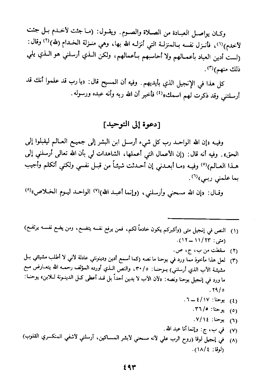 كُلُّ هَذَا فِي الْإِنْجِيلِ الَّذِي بِأَيْدِيهِمْ، وَفِيهِ أَنَّ الْمَسِيحَ قَالَ: يَا رَبُّ، قَدْ عَلِمُوا أَنَّكَ قَدْ أَرْسَلْتَنِي، وَقَدْ ذَكَرْتُ لَهُمُ اسْمَكَ، فَأَخْبَرَ أَنَّ اللَّهَ رَبُّهُ وَأَنَّهُ عَبْدُهُ وَرَسُولُهُ.