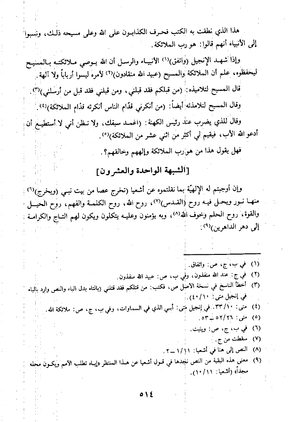 هَذَا الَّذِي نَطَقَتْ بِهِ الْكُتُبُ، فَحَرَّفَ الْكَذَّابُونَ عَلَى اللَّهِ وَعَلَى مَسِيحِهِ ذَلِكَ، وَنَسَبُوا إِلَى الْأَنْبِيَاءِ أَنَّهُمْ قَالُوا: هُوَ رَبُّ الْمَلَائِكَةِ.