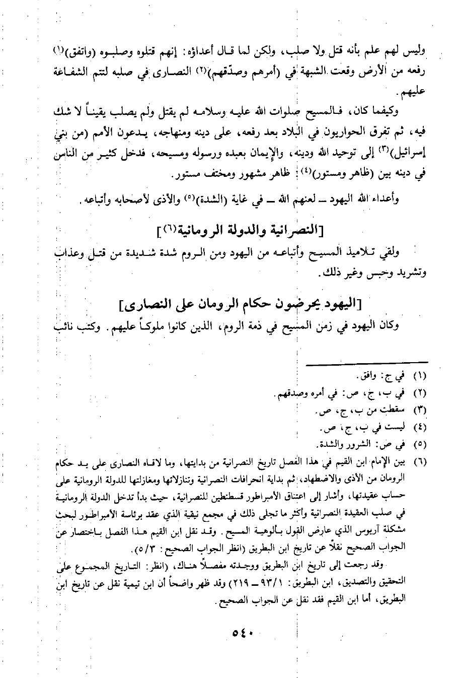 وَكَيْفَ كَانَ، فَالْمَسِيحُ صَلَوَاتُ اللَّهِ وَسَلَامُهُ، لَمْ يُقْتَلْ وَلَمْ يُصْلَبْ يَقِينًا لَا شَكَّ فِيهِ، ثُمَّ تَفَرَّقَ الْحَوَارِيُّونَ فِي الْبِلَادِ بَعْدَ رَفْعِهِ عَلَى دِينِهِ وَمِنْهَاجِهِ يَدْعُونَ الْأُمَمَ مِنْ بَنِي إِسْرَائِيلَ إِلَى تَوْحِيدِ اللَّهِ وَدِينِهِ وَالْإِيمَانِ بِعَبْدِهِ وَرَسُولِهِ وَمَسِيحِهِ، فَدَخَلَ كَثِيرٌ مِنَ النَّاسِ فِي دِينِهِ مَا بَيْنَ ظَاهِرٍ وَمَسْتُورٍ: ظَاهِرٌ مَشْهُورٌ وَمُخْتَفٍ مَسْتُورٌ.