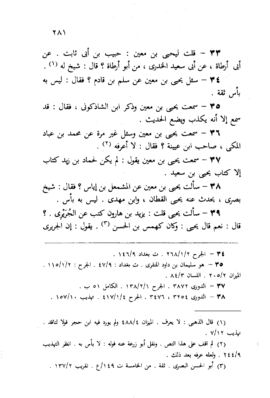 (39) سألت يحيى قلت: يزيد بن هارون كتب عن الجريري؟ قال: «نعم» ، قال يحيى: «وكان كهمس بن الحسن يقول: إن الجريري