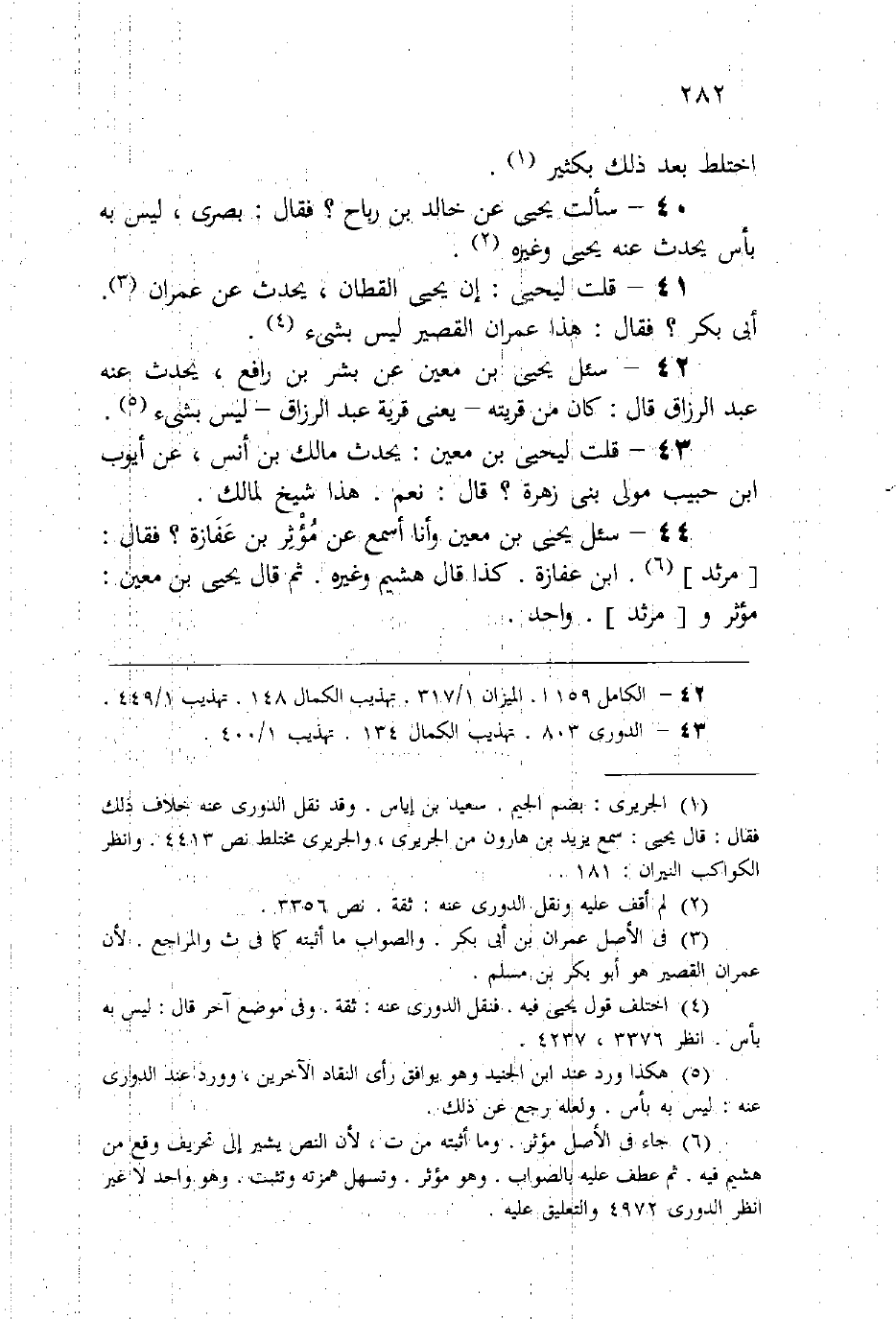 (44) سئل يحيى بن معين وأنا أسمع عن مؤثر بن عفازة، فقال: «مرثد بن عفازة كذا قال هشيم وغيره» ، ثم قال يحيى بن معين: «مؤثر ومرثد واحد» .