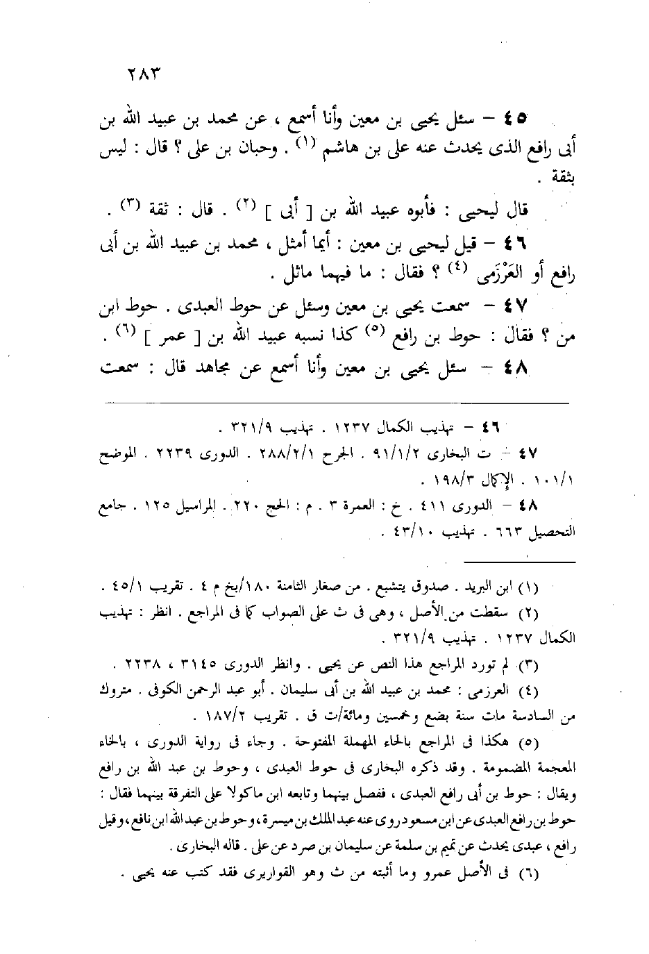 (46) قيل ليحيى بن معين: أيما أمثل: محمد بن عبيد الله بن أبي رافع أو العرزمي؟ فقال: «ما فيهما ماثل» .