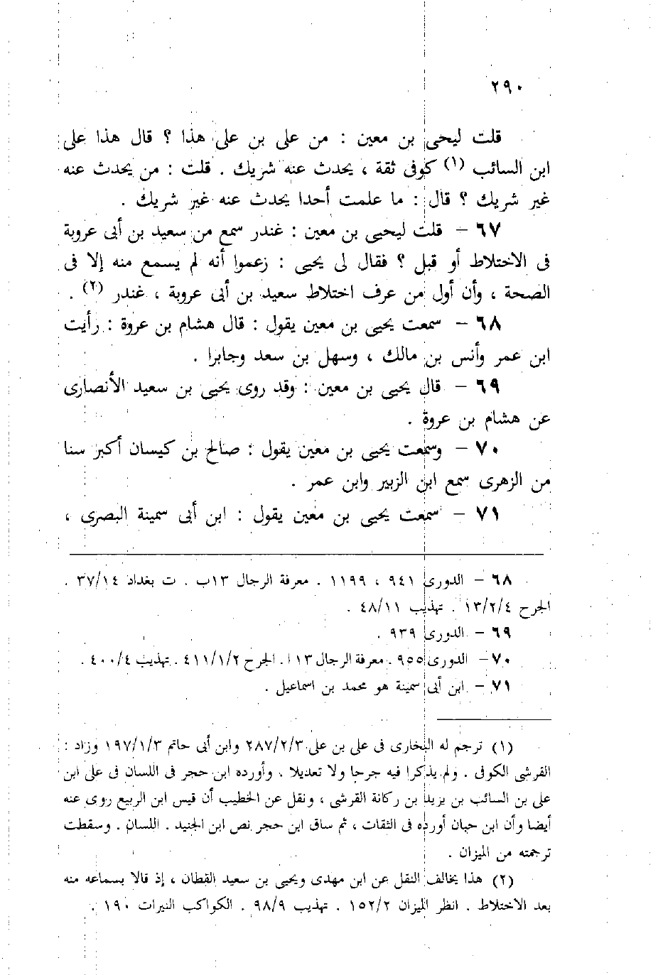 (69) قال يحيى بن معين: «وقد روى يحيى بن سعيد الأنصاري عن هشام بن عروة» .