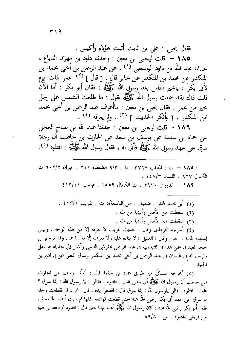 (186) قلت ليحيى بن معين: حدثنا عبد الله بن صالح العجلي، عن حماد بن سلمة، عن يوسف بن سعد، عن الحارث بن حاطب، أن رجلاً سرق على عهد رسول الله -صلى الله عليه وسلم-، فأتي به، فقال رسول الله -صلى الله عليه وسلم-: «اقتلوه» ،