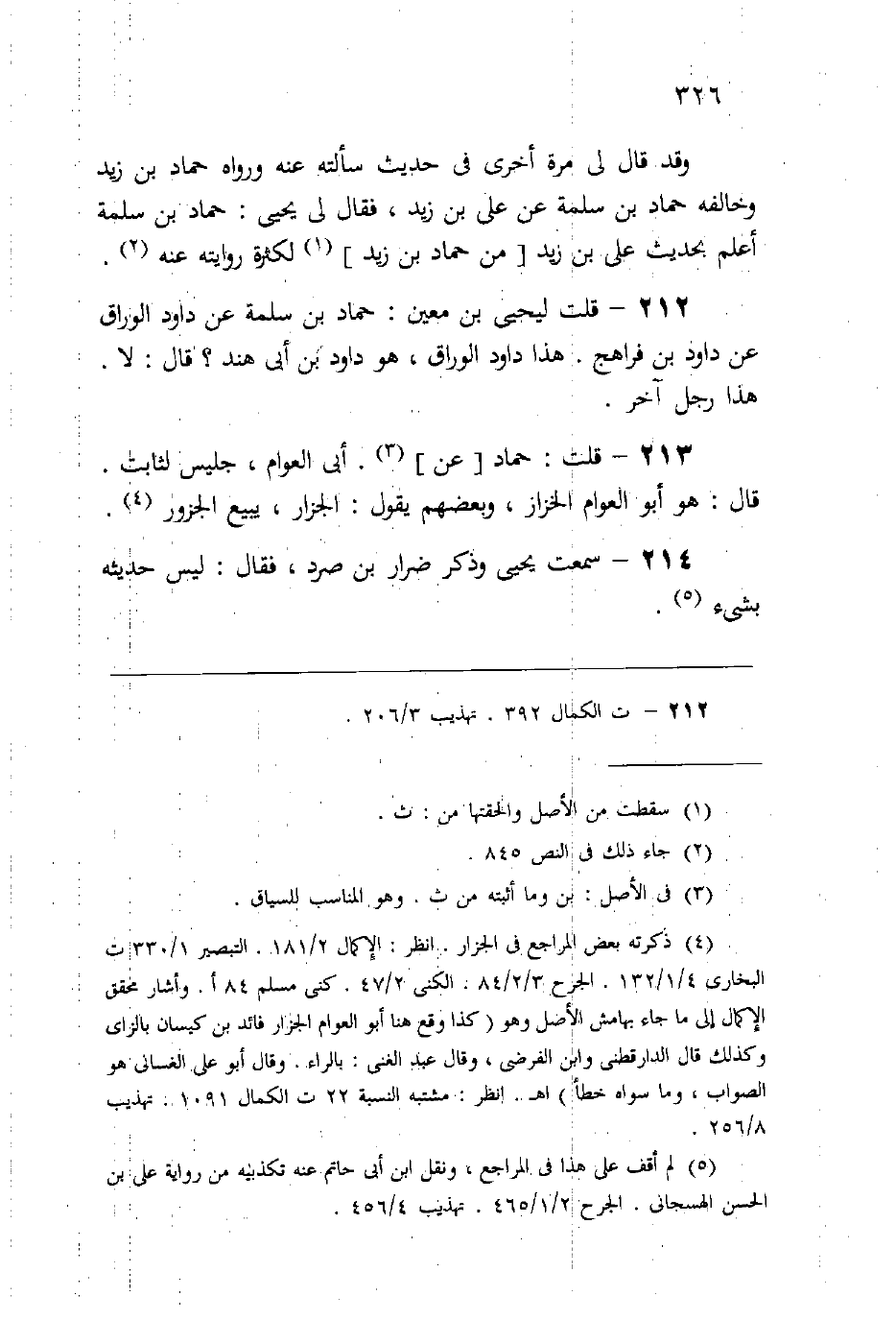 (212) قلت ليحيى بن معين: حماد بن سلمة عن داود الوراق عن داود بن فراهج، هذا داود الوراق هو داود بن أبي هند؟ قال: «لا، هذا رجل آخر» .