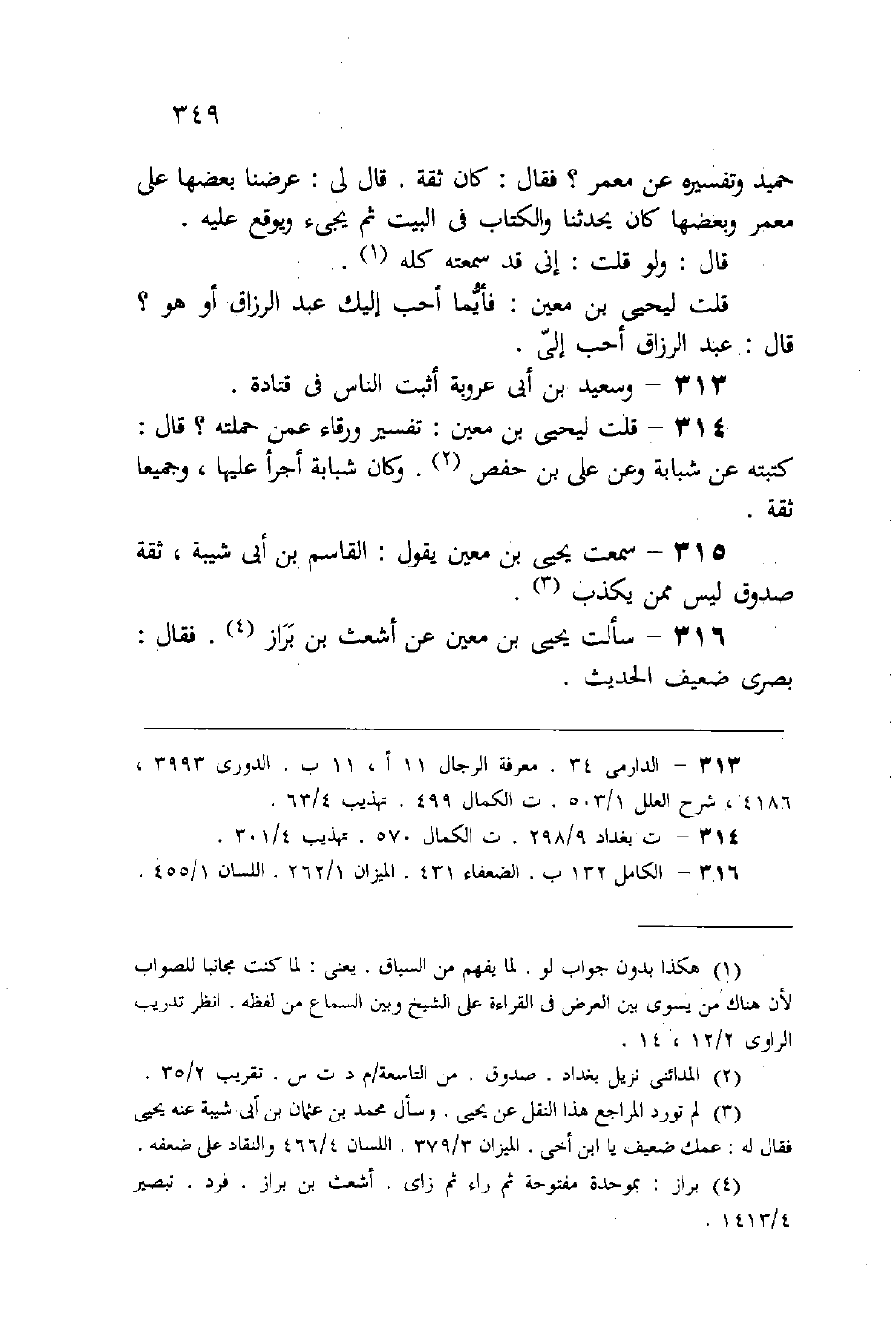 (314) قلت ليحيى بن معين: تفسير ورقاء عمن حملته؟ قال: «كتبته عن شبابة وعن علي بن حفص، وكان شبابة أجرأ عليها، وجميعًا ثقة» .