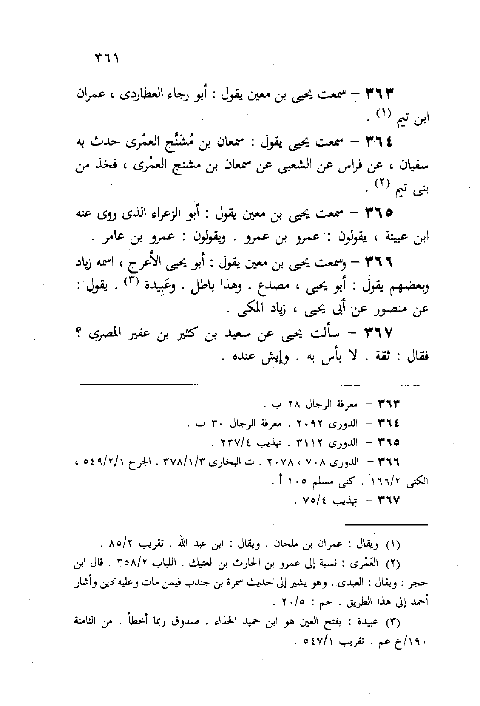 (363) سمعت يحيى بن معين يقول: «أبو رجاء العطاردي عمران بن تيم» .