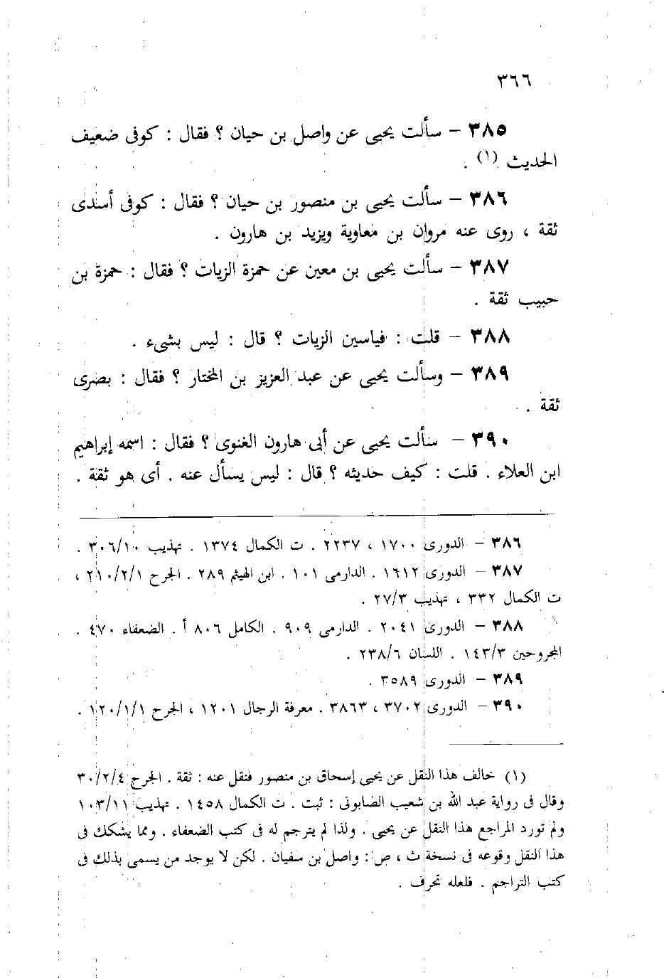 (387) سألت يحيى عن حمزة الزيات، فقال: «حمزة بن حبيب ثقة» .