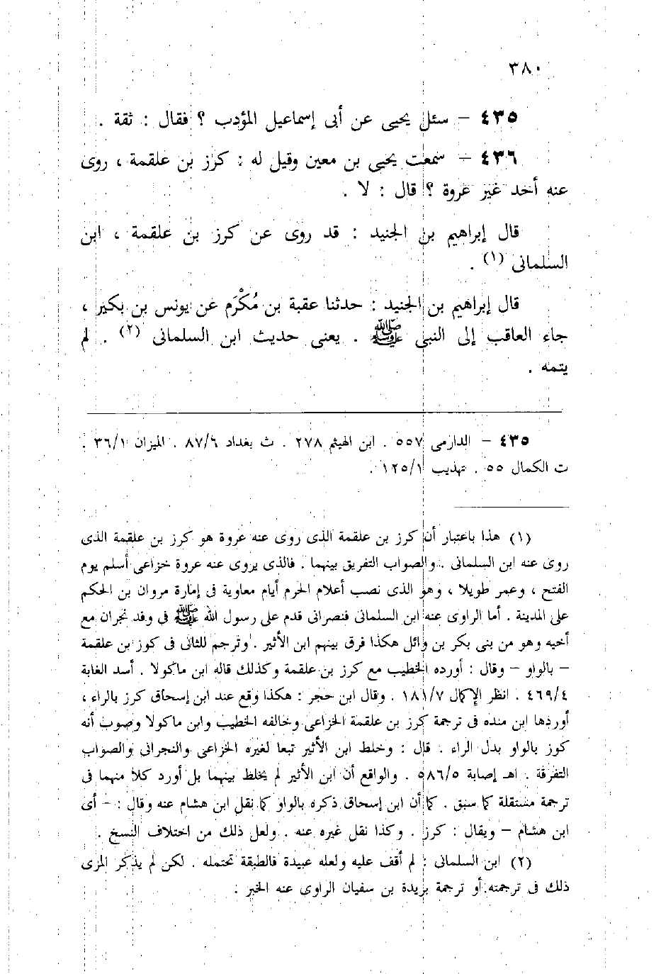 (436) سمعت يحيى بن معين وقيل له: كرز بن علقمة روى عنه أحد غير عروة؟ قال: «لا» .