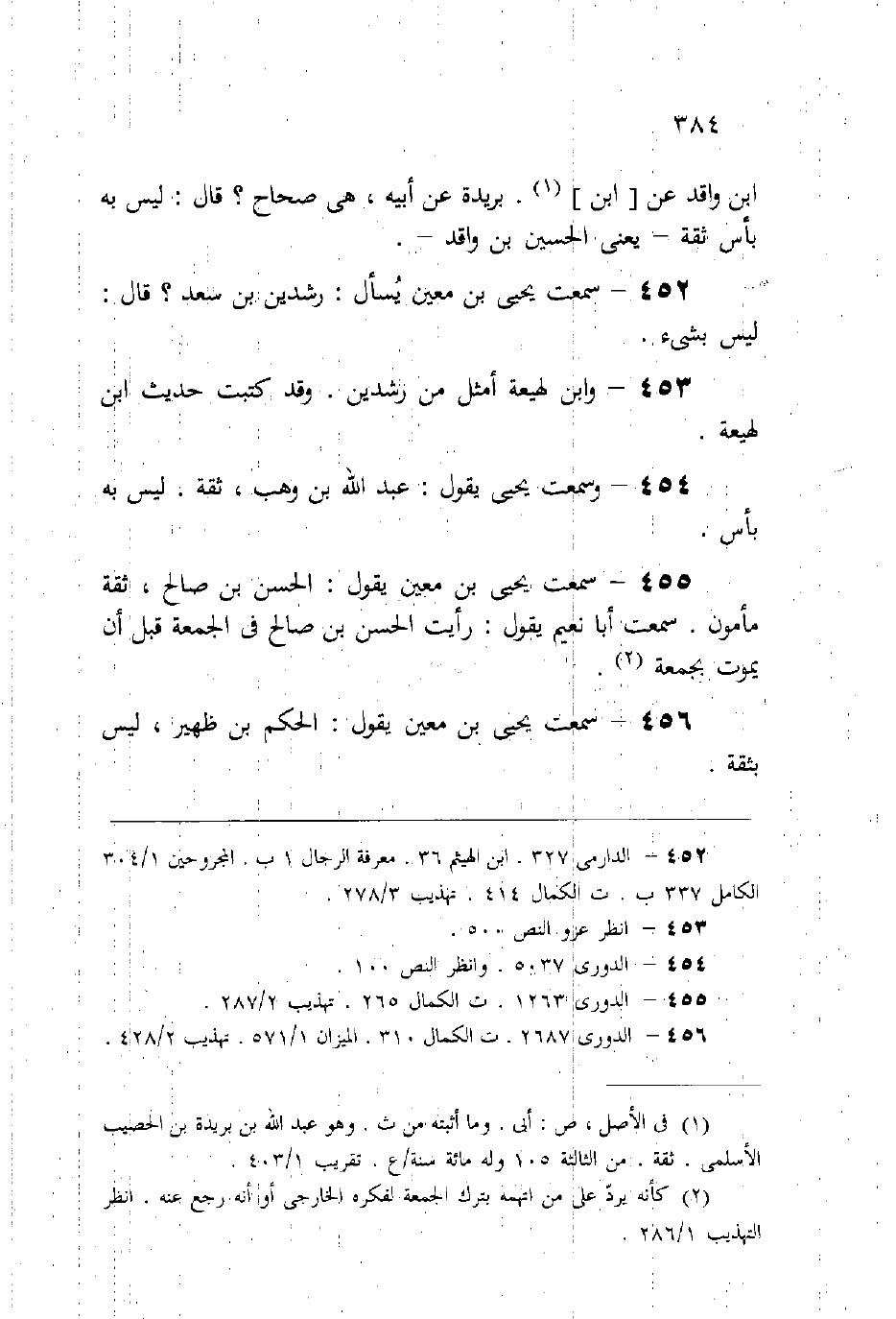 (452) سمعت يحيى يُسأل: رشدين بن سعد؟ قال: «ليس بشيء،