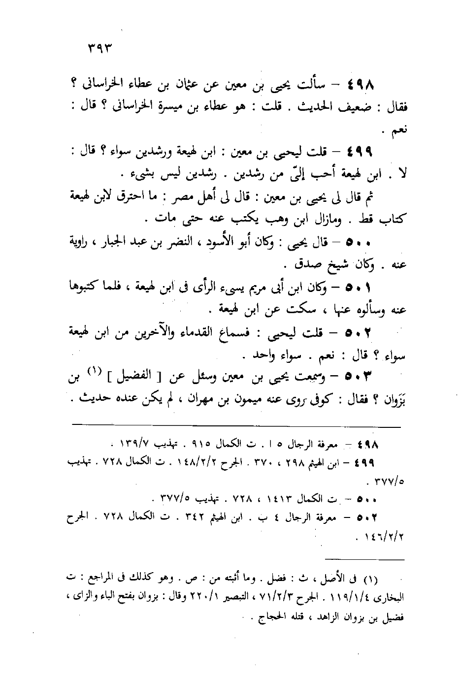 (503) وسمعت يحيى بن معين وسئل عن الفضيل بن بزوان، فقال: «كوفي روى عن ميمون بن مهران، لم يكن عنده حديث» .