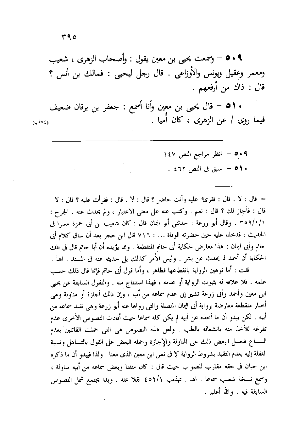 (509) وسمعت يحيى بن معين يقول: «وأصحاب الزهري: شعيب ومعمر وعقيل ويونس والأوزاعي» ، قال رجل ليحيى: فمالك بن أنس؟ قال: «ذاك من أرفعهم» .