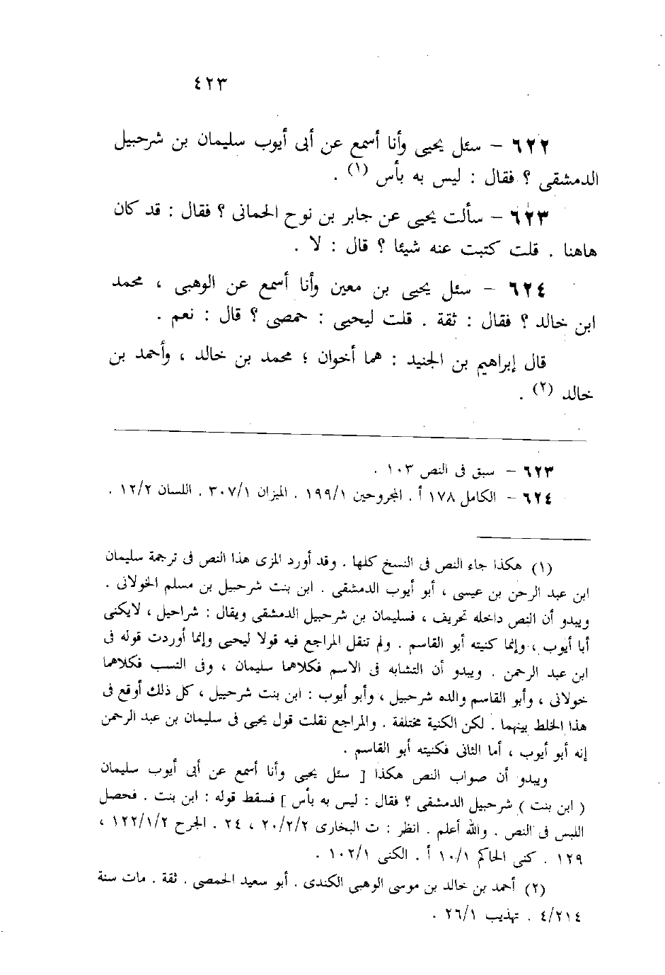 (622) سئل يحيى وأنا أسمع عن أبي أيوب سليمان بن شرحبيل الدمشقي، فقال: «ليس به بأس» .
