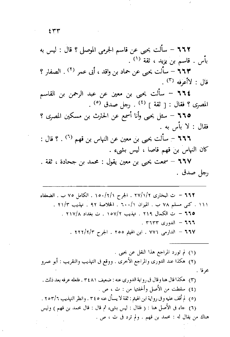 (665) سئل يحيى وأنا أسمع عن الحارث بن مسكين المصري، فقال: «لا بأس به» .