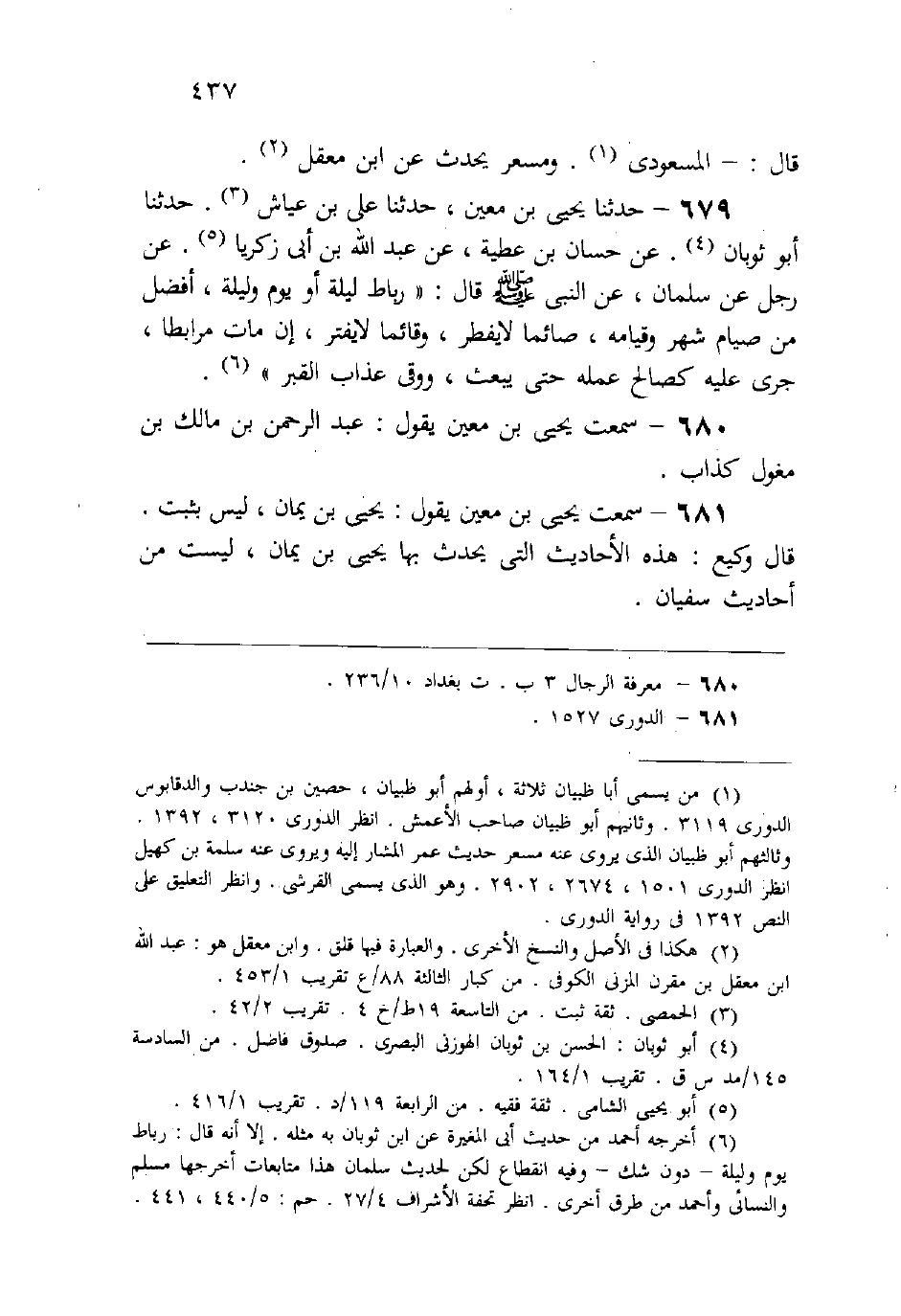 (680) سمعت يحيى بن معين يقول: «عبد الرحمن بن مالك بن مغول كذاب» .