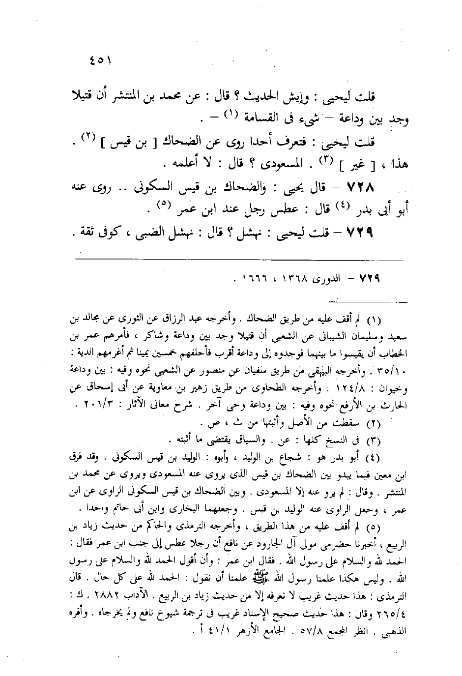 (728) قال يحيى: «والضحاك بن قيس السكوني، روى عنه أبو أبي بدر، قال: (عطس رجل عند ابن عمر) » .