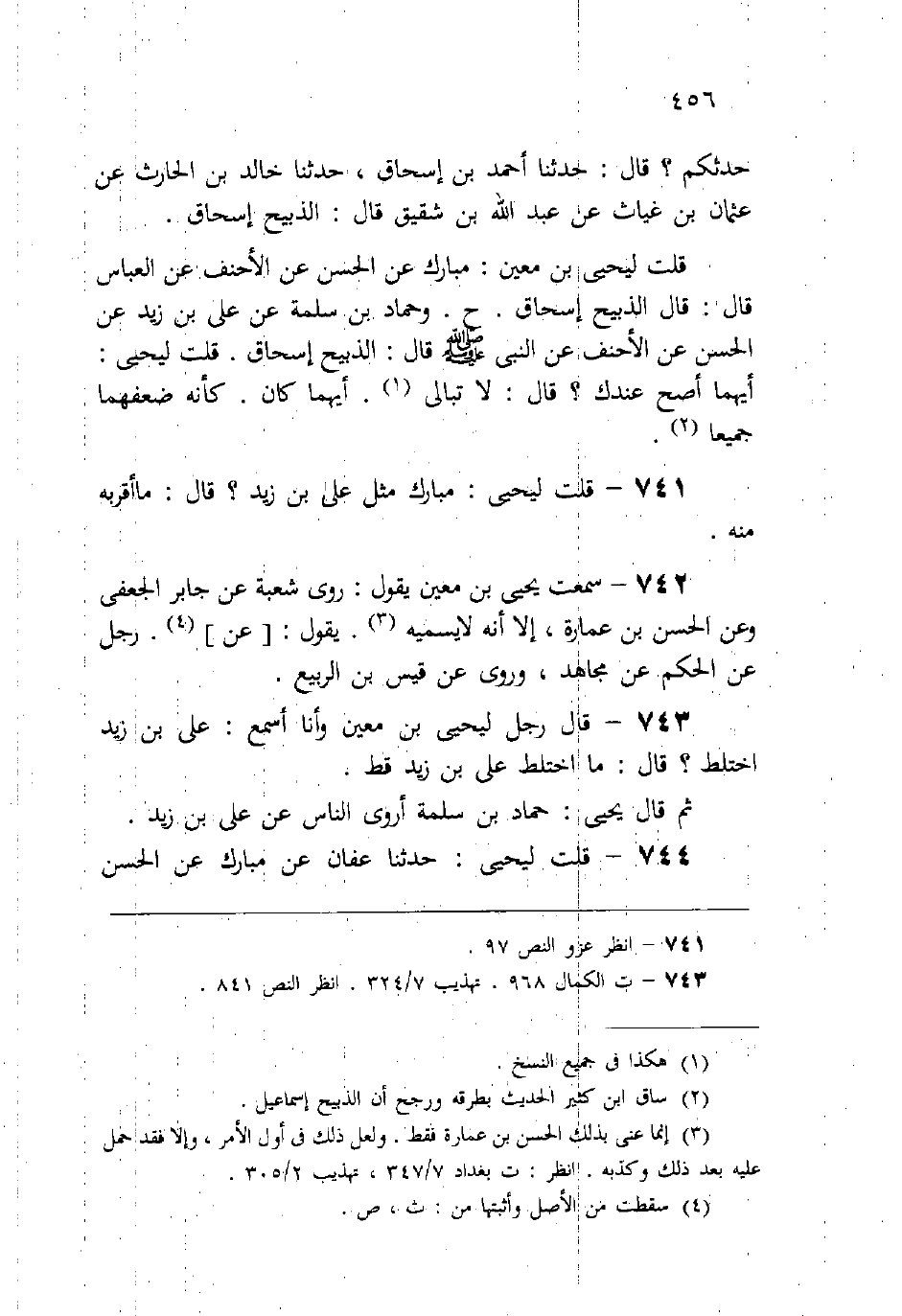 (744) قلت ليحيى: حدثنا عفان، عن مبارك، عن الحسن