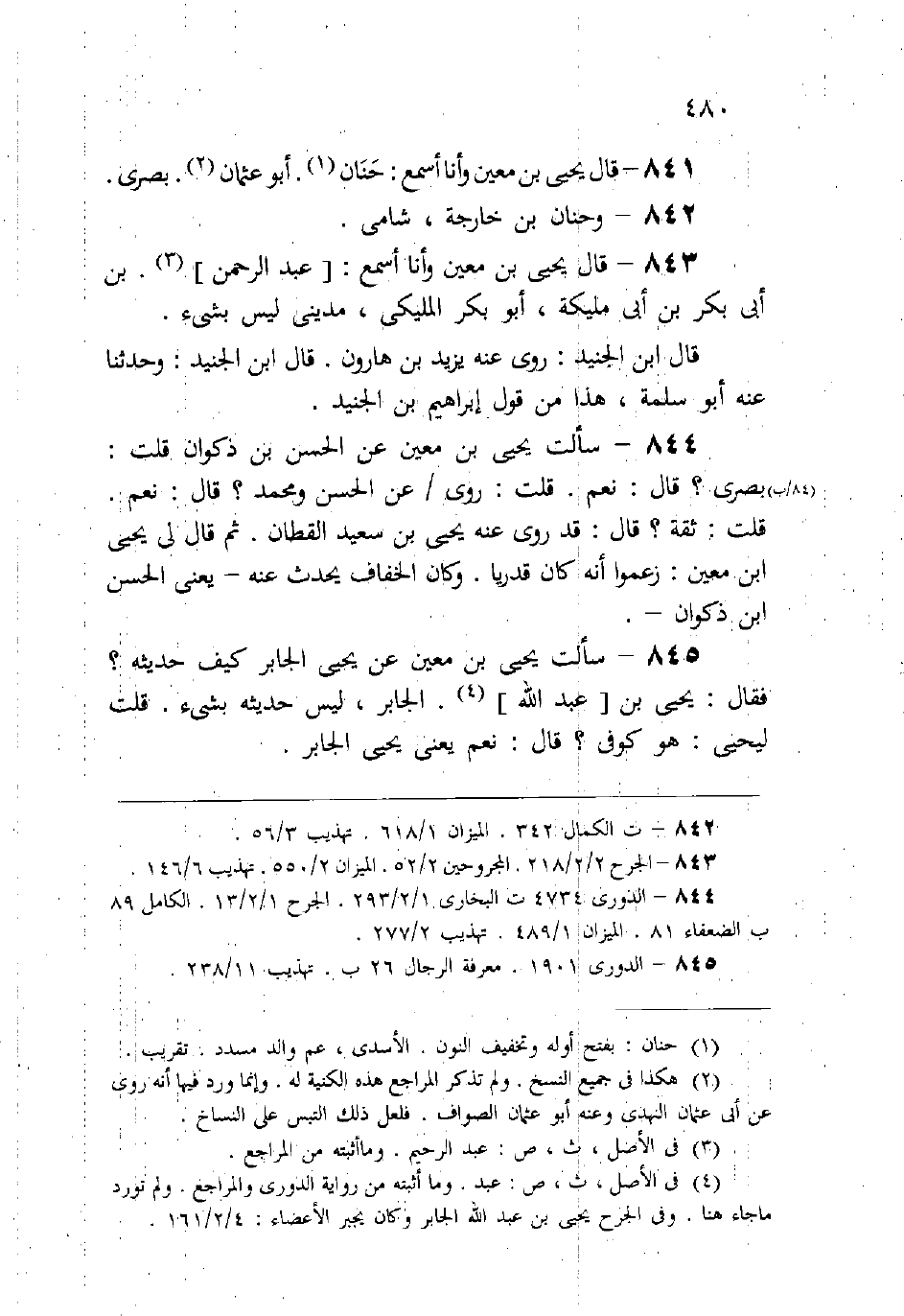 (841) قال يحيى بن معين وأنا أسمع: «حنان أبو عثمان بصري،