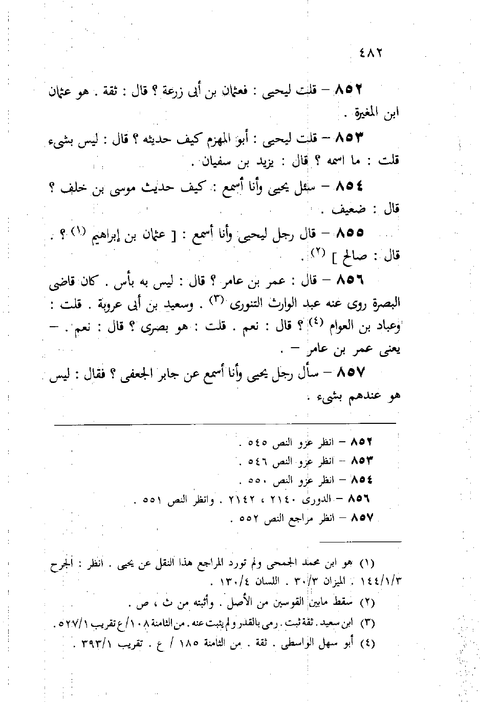 (852) قلت ليحيى: فعثمان بن أبي زرعة؟ قال: «ثقة، هو عثمان بن المغيرة» .