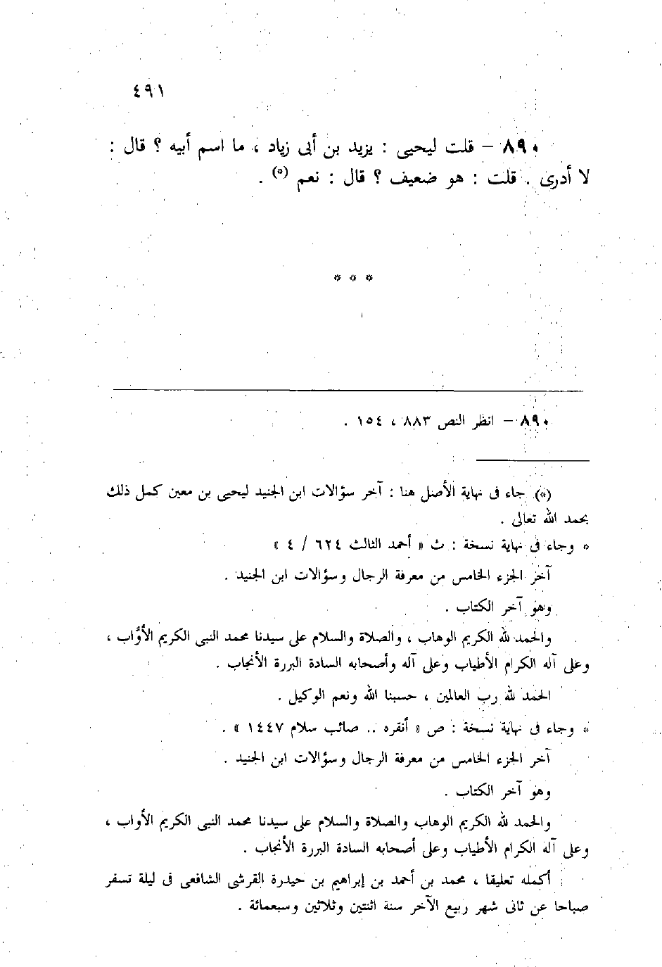 (890) قلت ليحيى: يزيد بن أبي زياد ما اسم أبيه؟ قال: «لا أدري» ، قلت: هو ضعيف؟ قال: «نعم» .