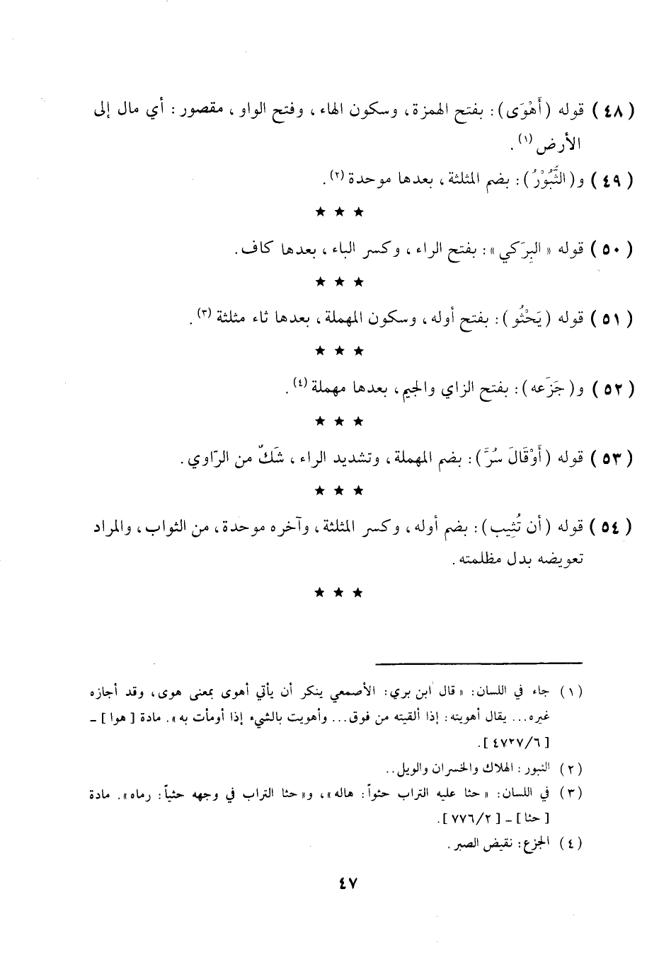 49- و(الثبور): بضم المثلثة، بعدها موحدة.