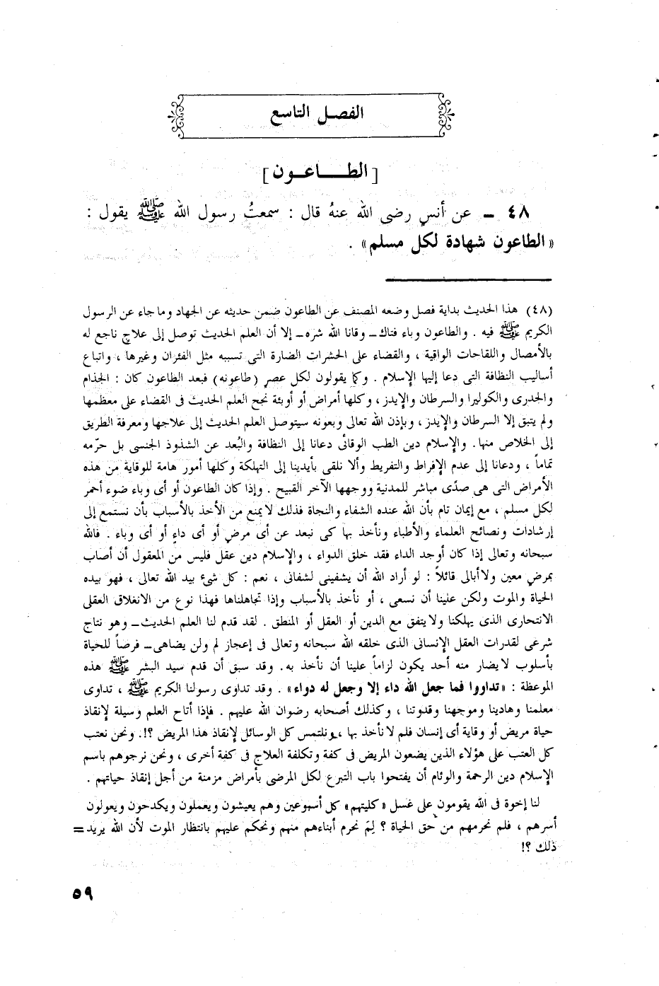 عن أنس رضي الله عنه قال: سمعت رسول الله صلى الله عليه وسلم يقول: {الطاعون شهادة لكل مسلم} .