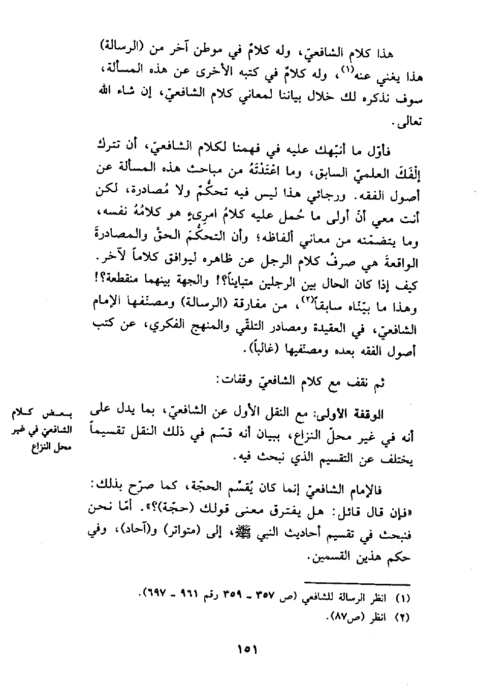 (¬1) انظر الرسالة للشافعي (ص 357- 359 رقم 961- 697) .