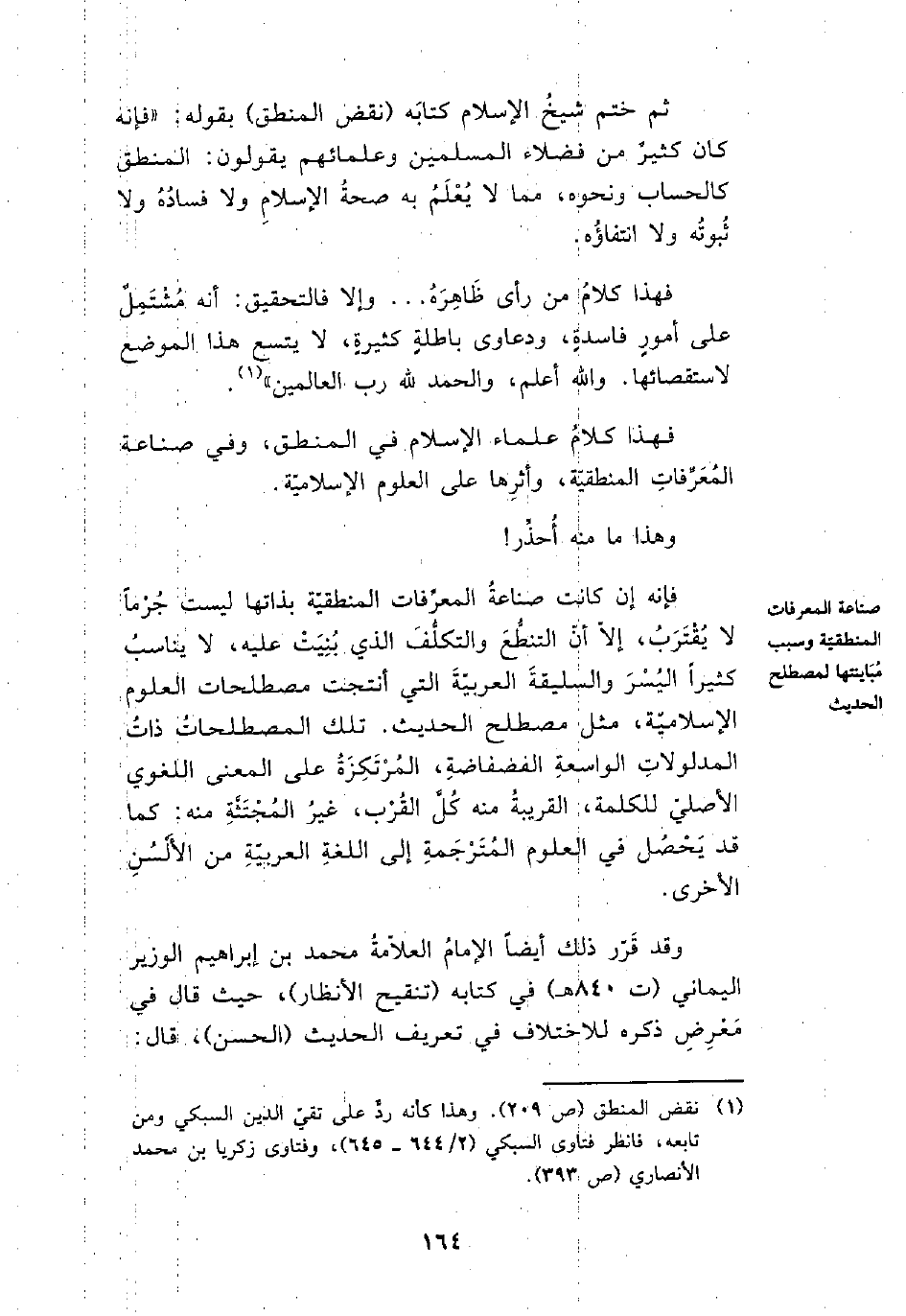 (¬1) نقض المنطق (ص 209) . وهذا كأنه رد على تقي الدين السبكي ومن تابعه، فانظر فتاوى السبكي (2/644-645) ، وفتاوى زكريا بن محمد