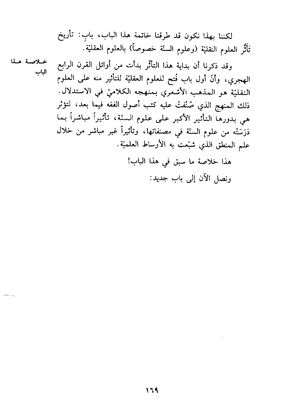 (¬1) . لكننا بهذا نكون قد طرقنا خاتمة هذا الباب، باب: تأريخ تأثر العلوم النقلية (وعلوم السنة وخصوصاً) بالعلوم العقلية.