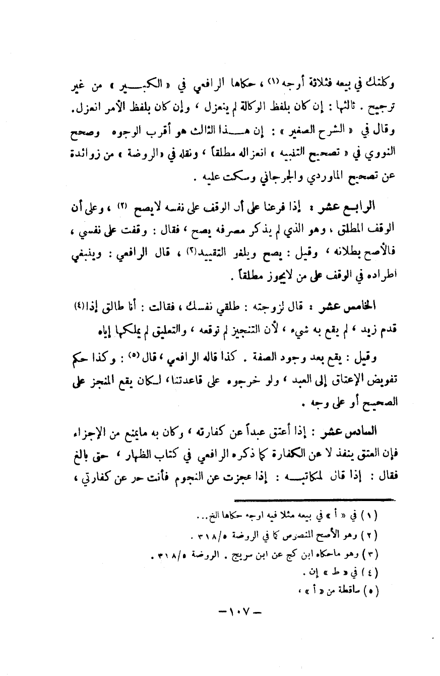 الرَّابِع عشر إِذا فرعنا على أَن الْوَقْف على نَفسه لَا يَصح وعَلى أَن الْوَقْف الْمُطلق وَهُوَ الَّذِي لم يذكر مصرفه يَصح فَقَالَ وقفت على نَفسِي فَالْأَصَحّ بُطْلَانه وَقيل يَصح وَيَلْغُو التَّقْيِيد قَالَ الرَّافِعِيّ وَيَنْبَغِي اطراده فِي الْوَقْف على من لَا يجوز مُطلقًا