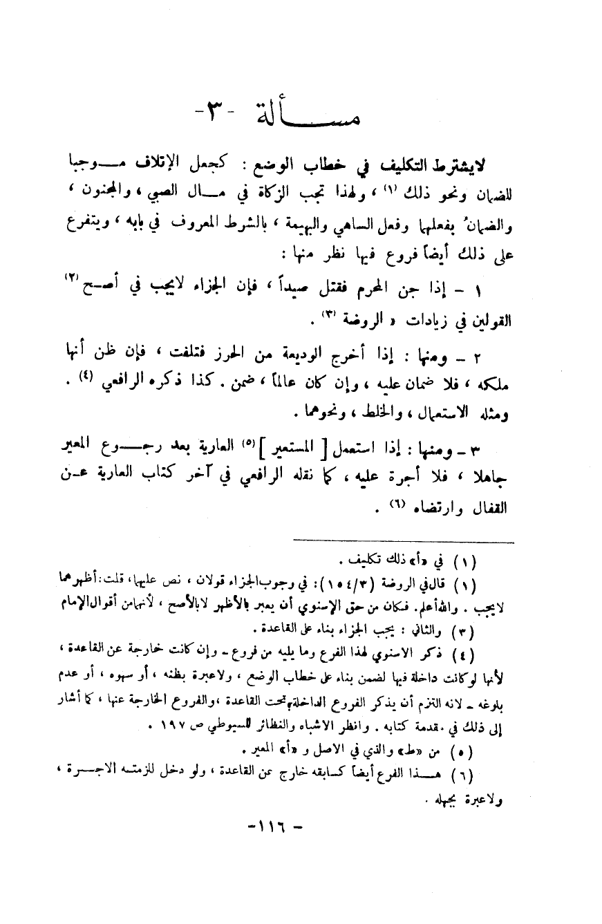 ١ - إِذا جن الْمحرم فَقتل صيدا فَإِن الْجَزَاء لَا يجب فِي أصح الْقَوْلَيْنِ فِي زيادات الرَّوْضَة
