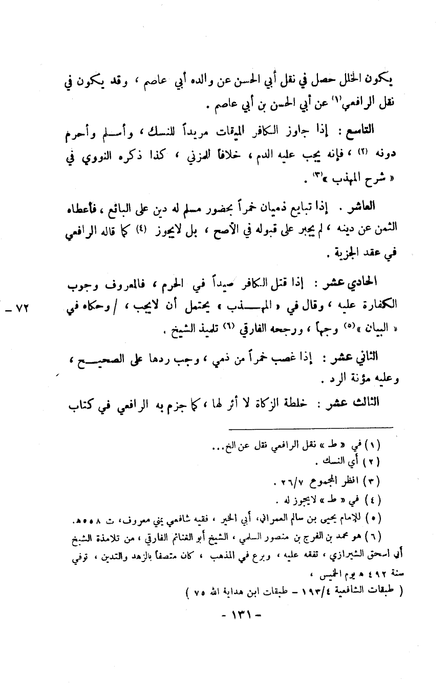 الثَّانِي عشر إِذا غصب خمرًا من ذمِّي وَجب ردهَا على الصَّحِيح وَعَلِيهِ مُؤنَة الرَّد